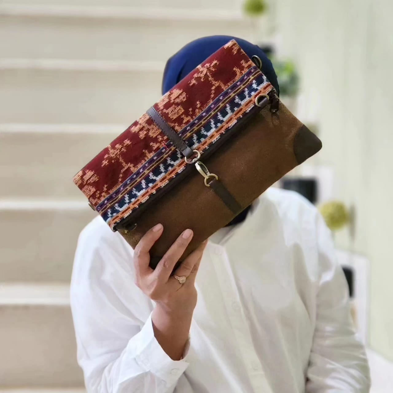 Jenis Bahan: Material : Tenun Handmade NTT,Serat alam kenaf dan Kulit Sapi
