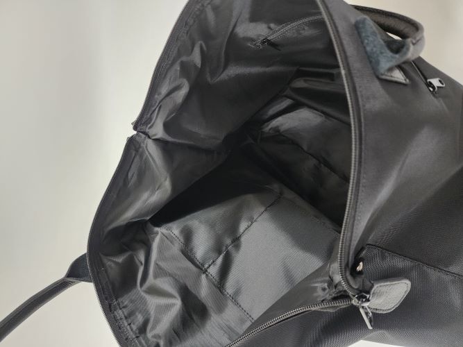 Terdapat saku dengan zipper di bagian belakang dan dalam