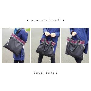 Flexible tote bag yang saat diserut bentuknya menjadi unik, atau lepas serutannya jadi lega ruangnya