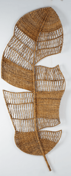 Hiasan dinding berbentuk daun pisang yang terbuat dari pelepah pisang dan rangka besi
