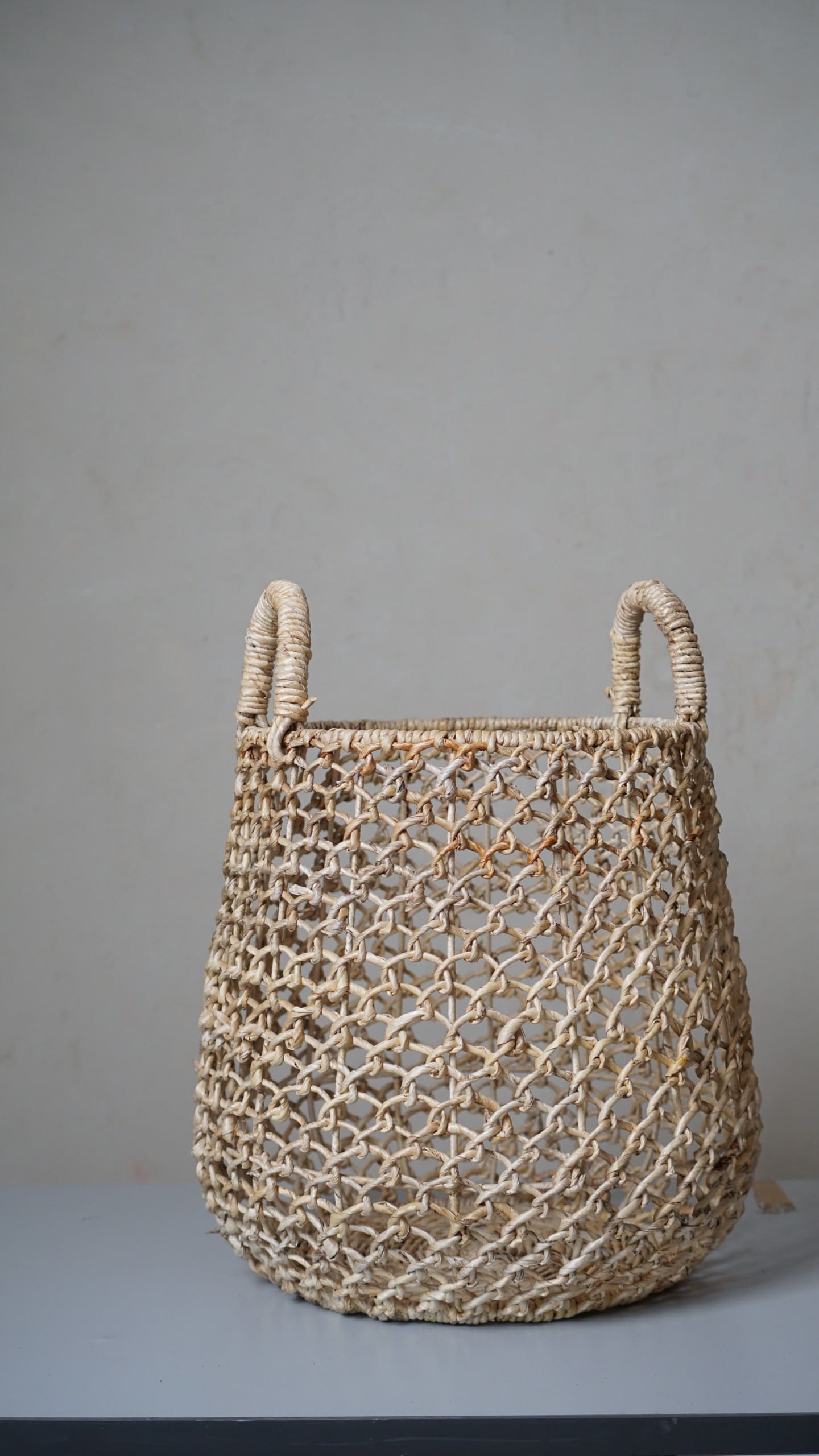 Keranjang manis terbuat dari kombinasi pelepah pisang dengan anyaman rantai melingkar yang memberikan kesan mendalam pada setiap bentuknya, selain memiliki berbagai fungsi, keranjang ini juga mampu mempercantik tampilan rumah.