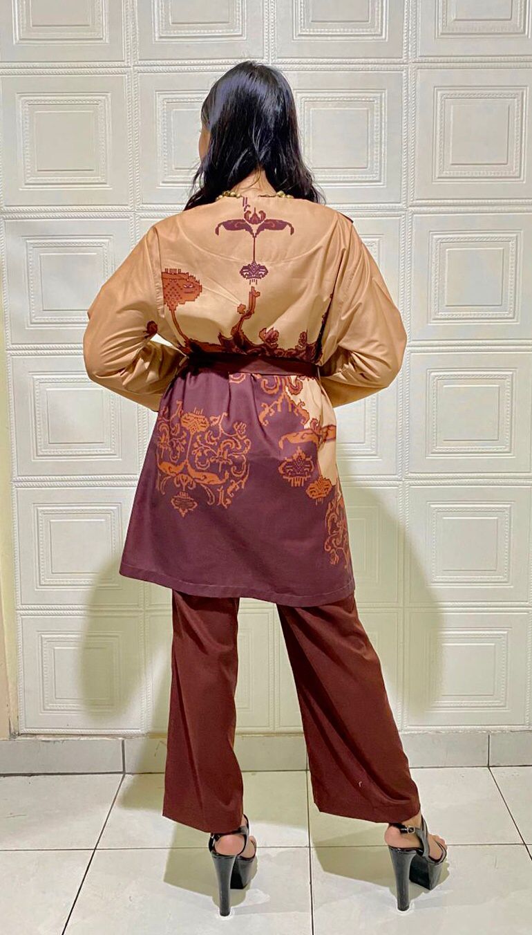 Stelan Kulot dan Outer Cual Katun Motif Kembang Gajah Coklat