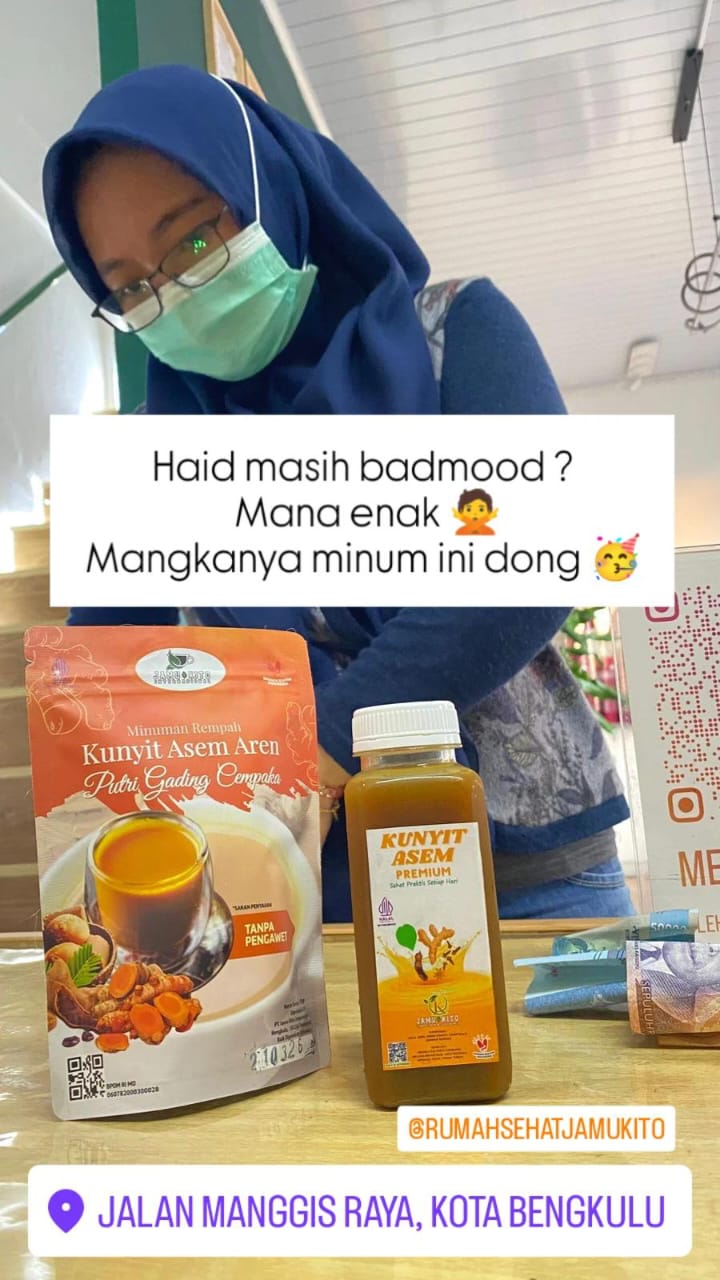Kunyit asem aren adalah minuman rempah yang praktis dan higienis untuk menjaga kesehatan lambung dan melancarkan haid.