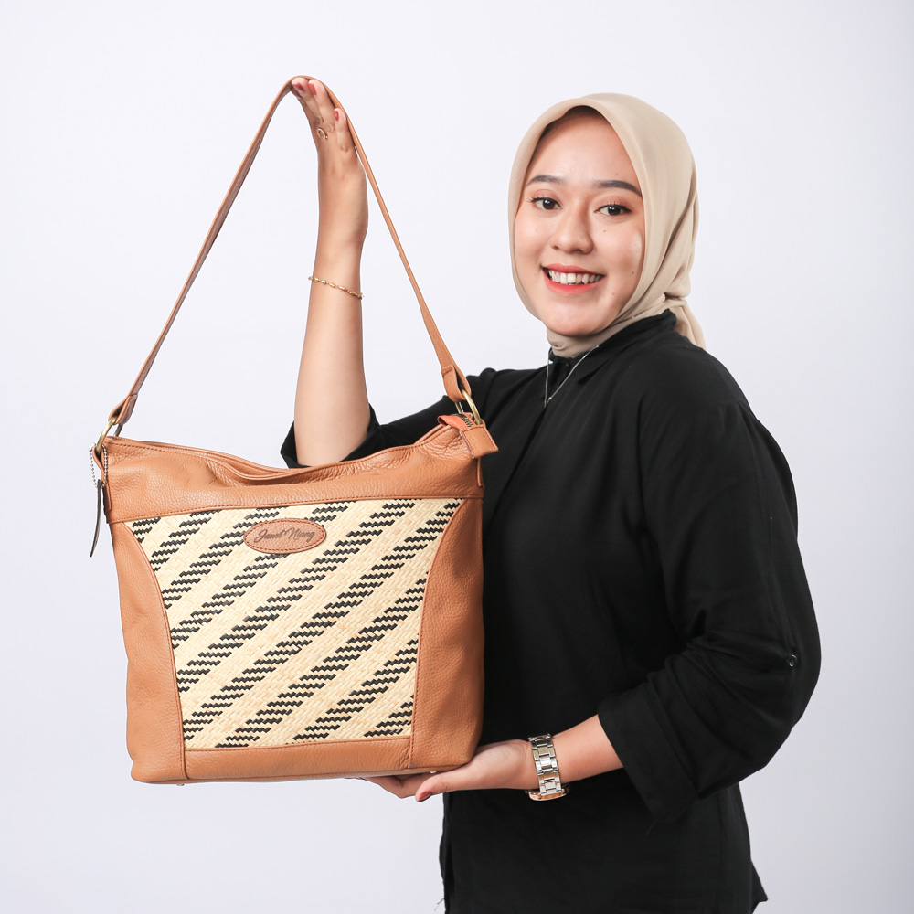kombinasi kulit asli dengan motif anyaman rotan ekor burung