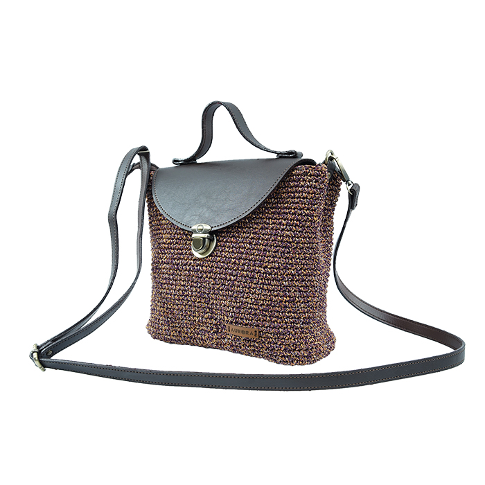 Tas dengan desain mungil berukuan panjang 20 cm tinggi 17 cm, tapi tetap luas dalamnya. Pada bagian dalam ada kantong 1, dan sisi depan sebelah luar nya ada kantong juga. Dilengkapi dengan tali panjang yang adjustable. Bisa langsung ditenteng, bisa juga dipasang tali panjangnya sehingga menjadi tas selempang. Tas ini mempunyai berat tas isekitar 300 gram, jadi sangat ringan tapi dengan struktur tas yang kokoh dengan anyaman yang kencang.