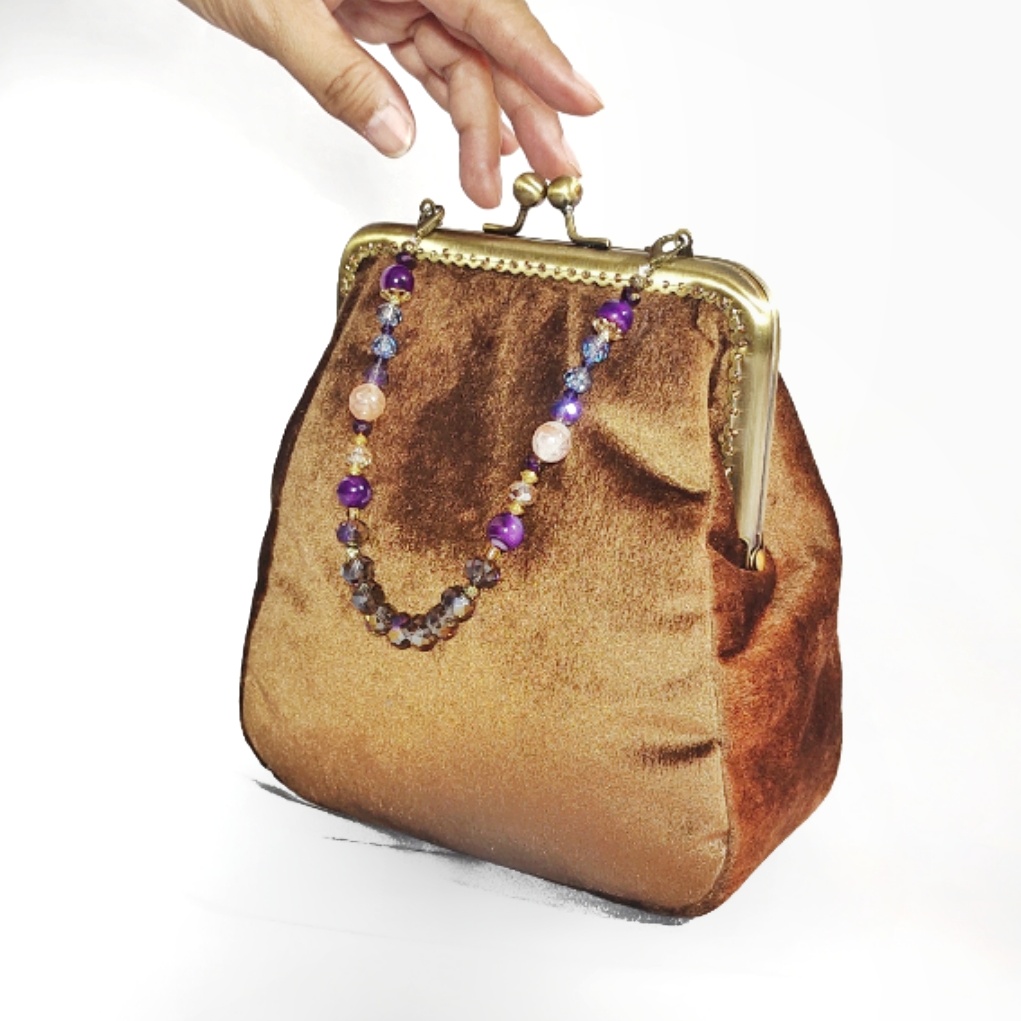 Tas pesta ini anggun sekaligus unik dan merupakan koleksi Premium dari jejeran seri desain berjudul VINTEGLAM yang sarat detil karya kerajinan tangan.