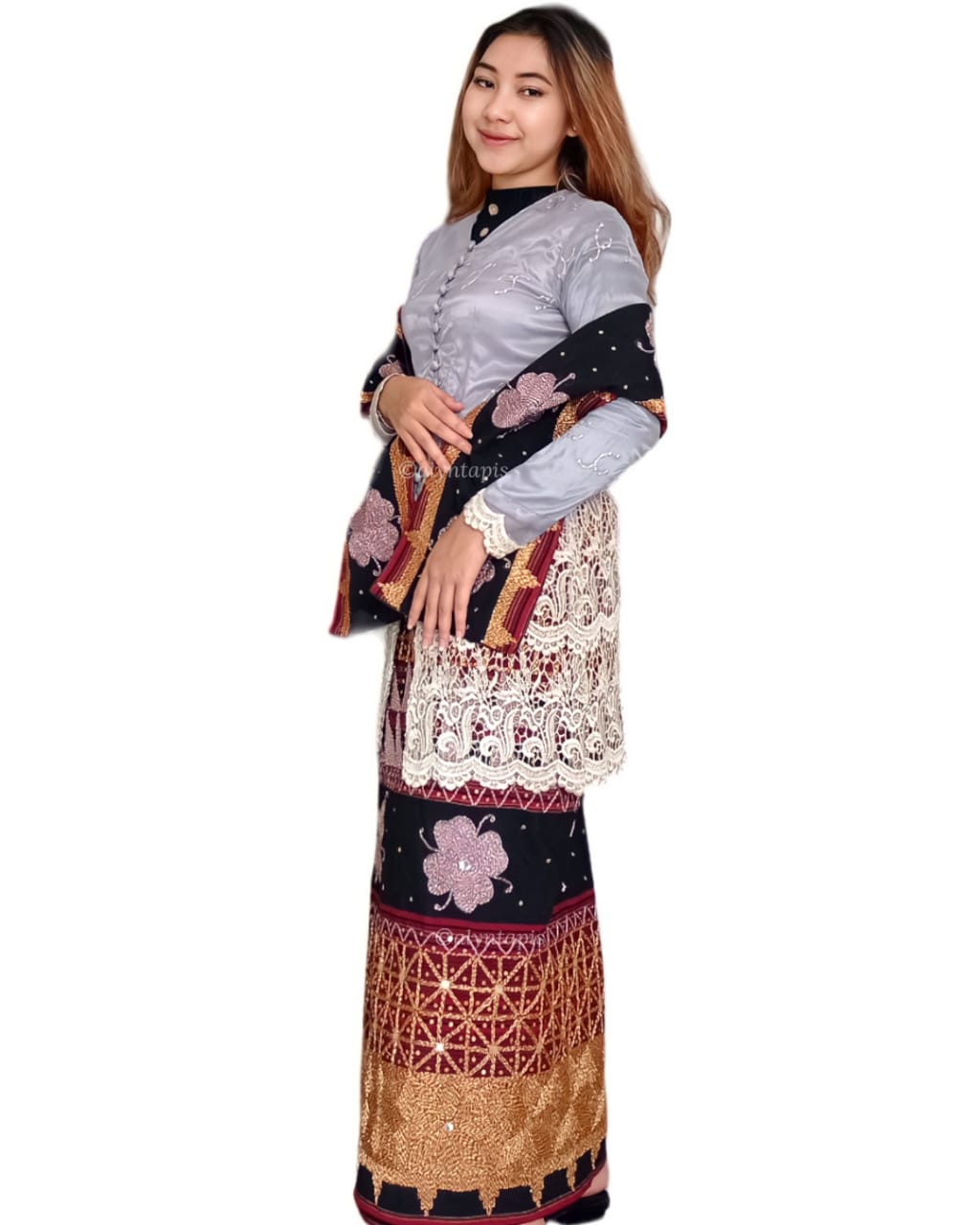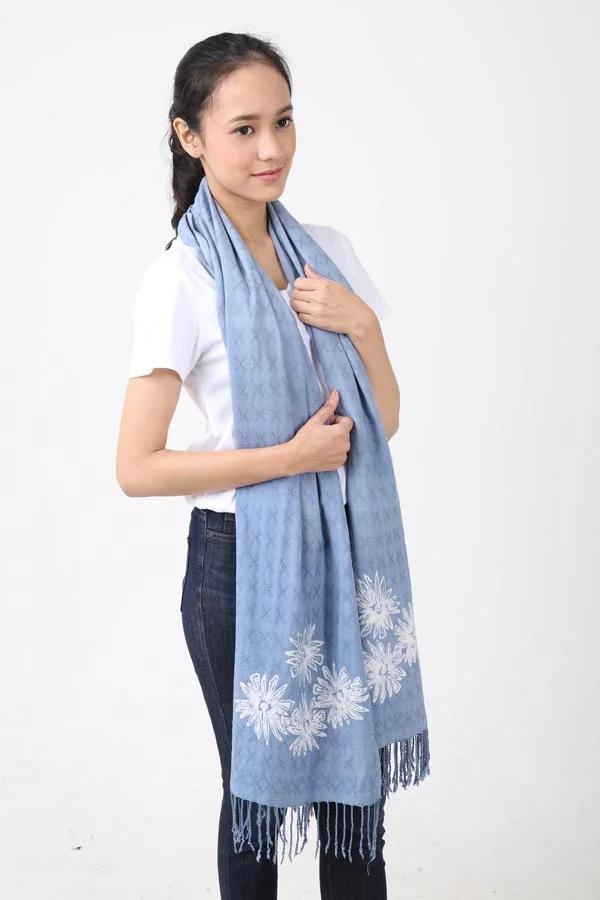 Makna Motif: A sprinkling of tuberose flowers and chrysanthemums at each end of the scarf