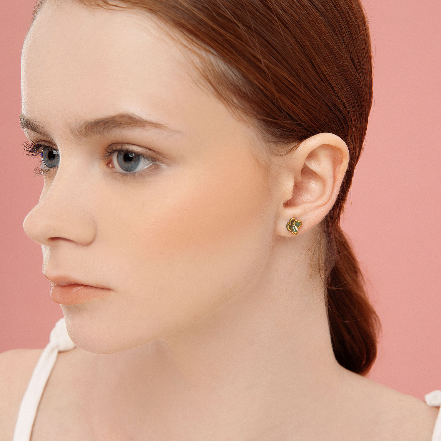 Anting-anting mungil yang sempurna untuk aktivitas sehari-hari. Halus namun mencolok dengan aksen emas. Semua perhiasan dari KAR dibuat satu per satu di studio kami.