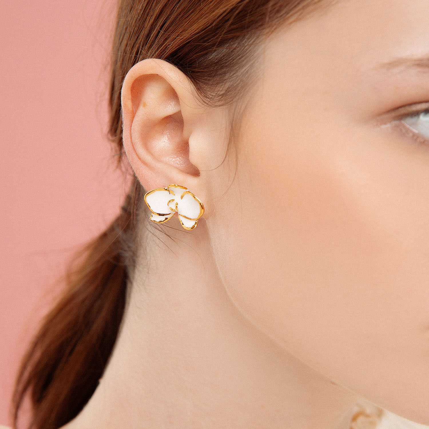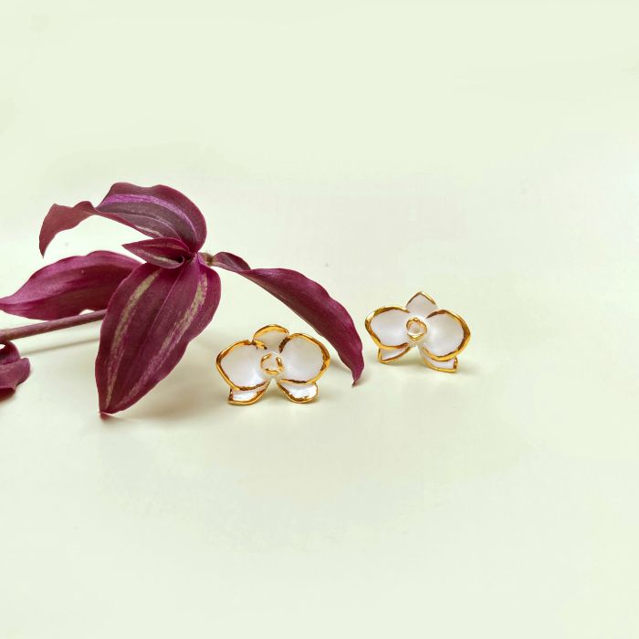 'Anggrek Bulan' menjadi inspirasi yang luar biasa dalam pembuatan anting-anting ini. Semua perhiasan dari KAR dibuat satu per satu di studio kami.