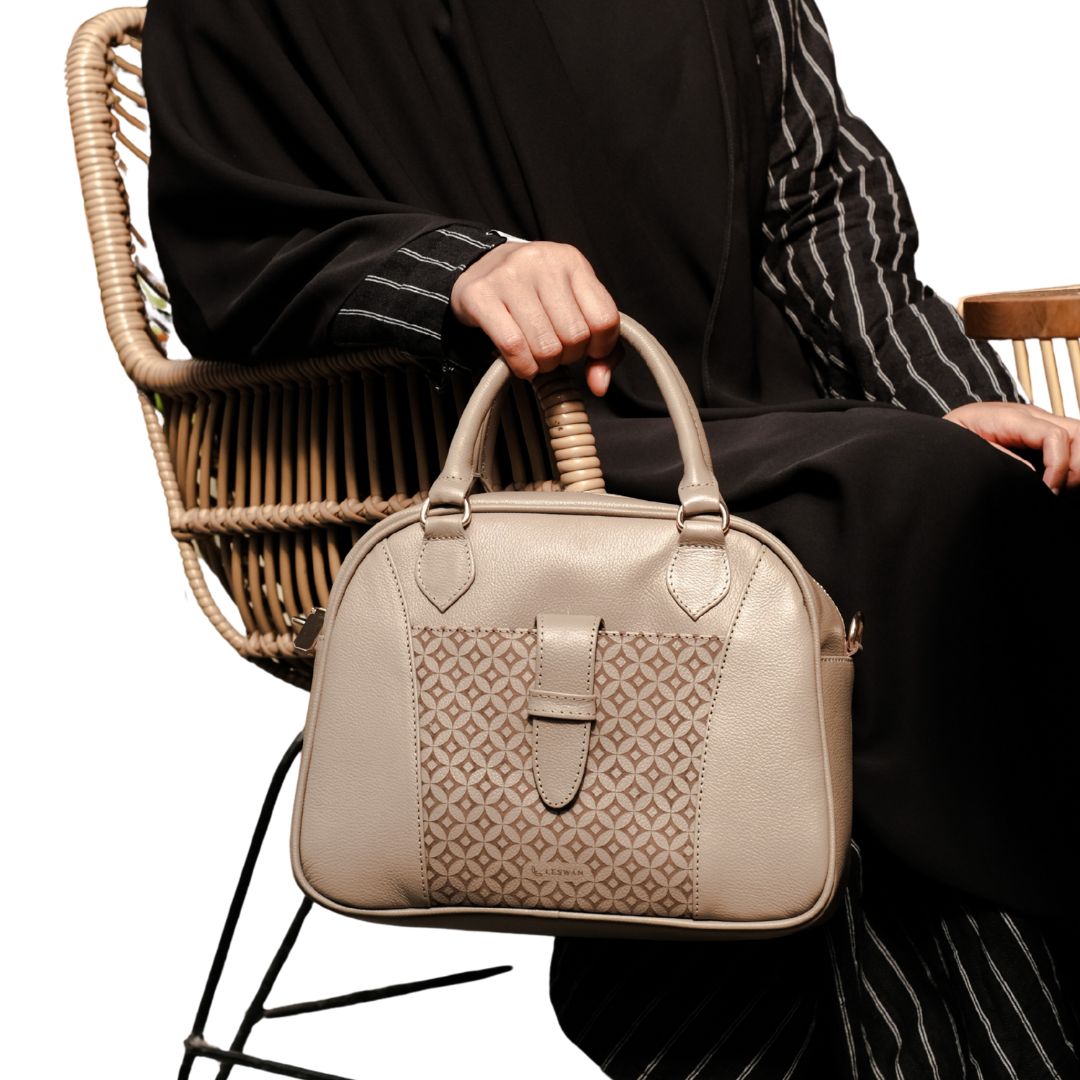 Jenis Bahan: batu alam raflesia, mote, payet jepang miyuki, kristal, kulit sintetis tebal dan peniti
