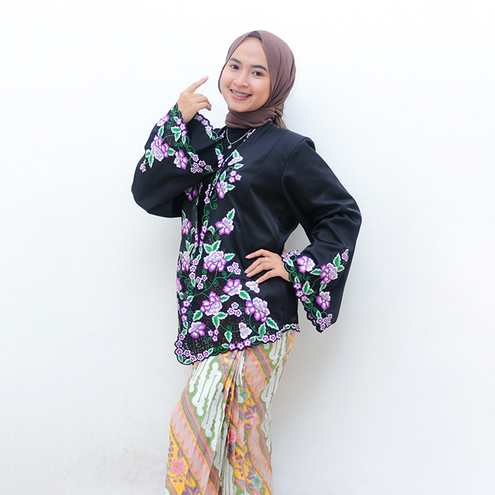 Kebaya Klasik Motif Bunga Peony (hitam)
