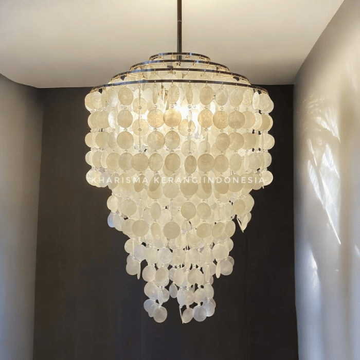 Capiz Shell Chandelier adalah karya home decor ramah lingkungan yang memadukan keindahan dan keberlanjutan. Terbuat dari limbah kulit kerang Capiz yang berasal dari restoran, lampu gantung ini diolah menjadi elemen interior design yang elegan dan bercahaya lembut. Dengan desain artistik dan nuansa alami, setiap chandelier membawa cerita tentang daur ulang yang bernilai tinggi. Dilengkapi garansi 1 tahun, ini bukan sekadar pencahayaan—ini adalah pernyataan gaya hidup hijau dalam ruangan Anda.