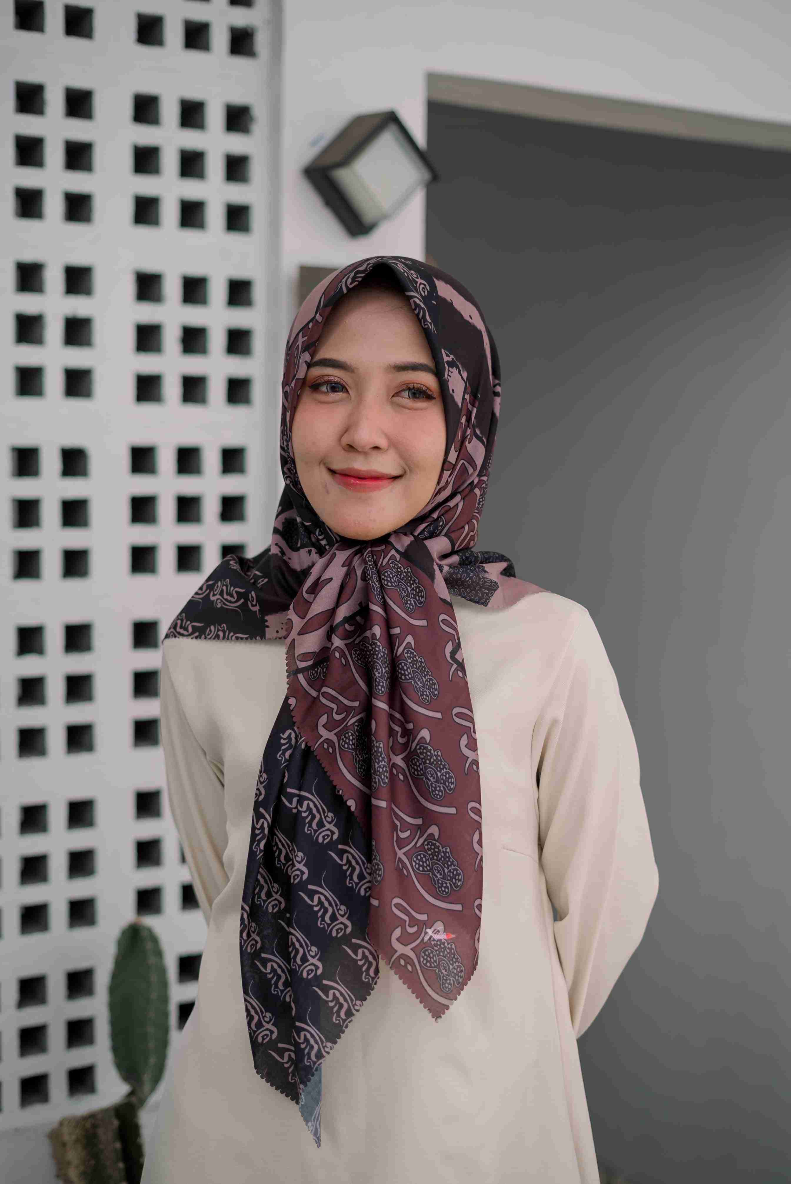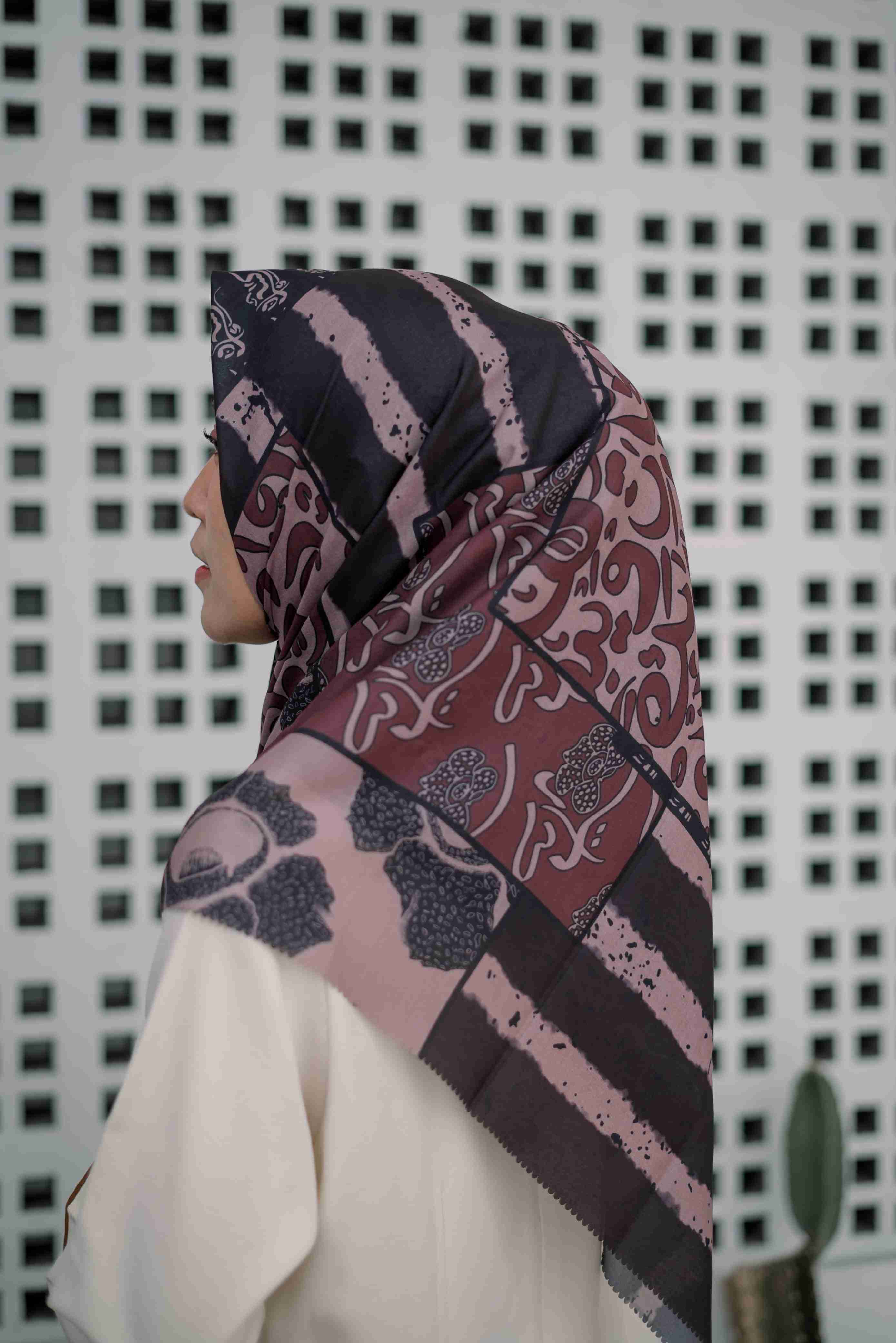 Makna Motif: Dengan paduan warna coklat hitam, bermotif Besurek dengan beberapa layout yang unik, didesain untuk menampilkan pancaran elegan dan dinamis untuk siapa saja yang memakai scarf ini