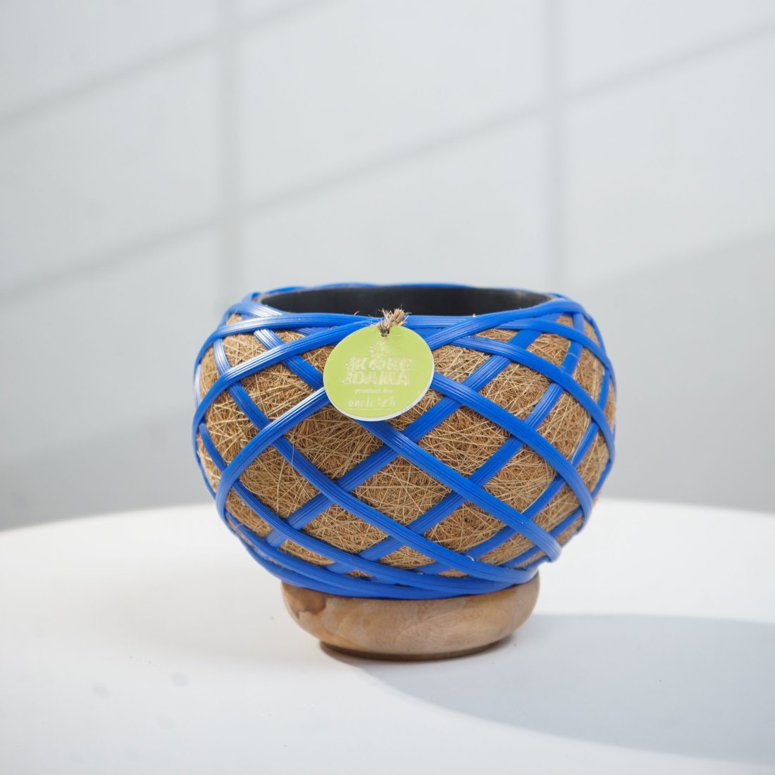 dan akar pakis yang dihias dengan berbagai macam tali (benang rajut, makram, tali sintetis,
