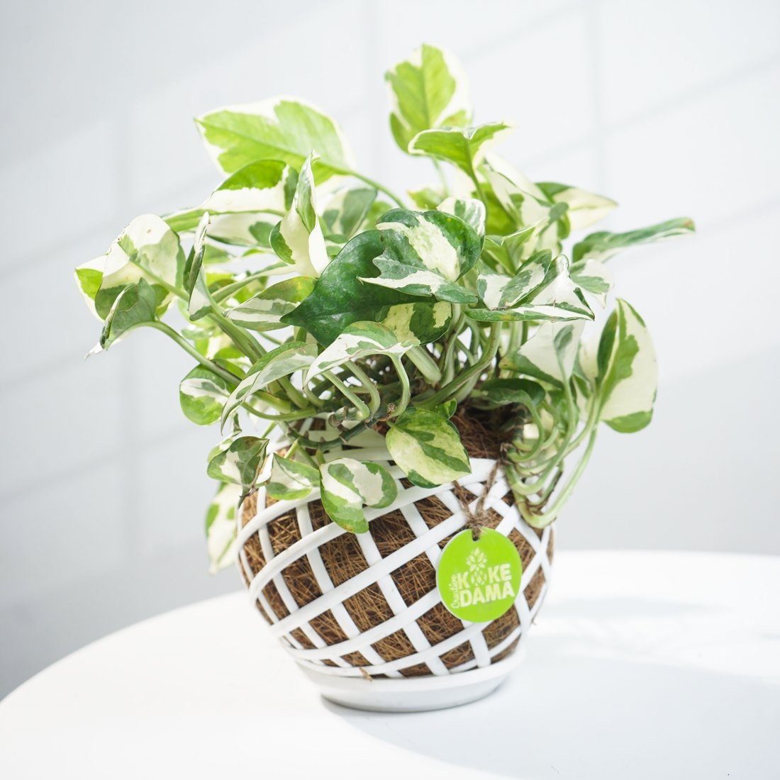 Hadir dengan tampilan unik dan alami, Sirih Gading Enjoy dalam balutan kokedama adalah pilihan sempurna untuk mempercantik ruangan Anda. Tanaman ini dikenal dengan daun hijau cerah bercorak kuning yang menyegarkan mata dan memberi kesan tropis.
