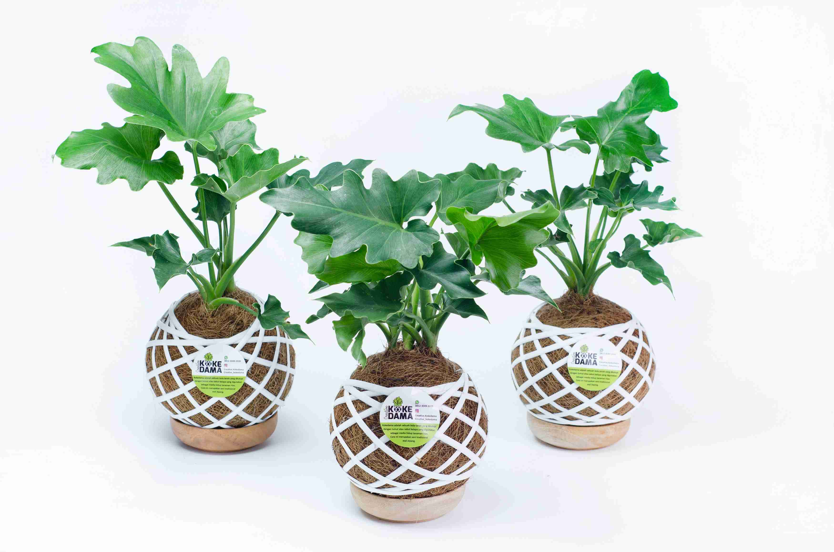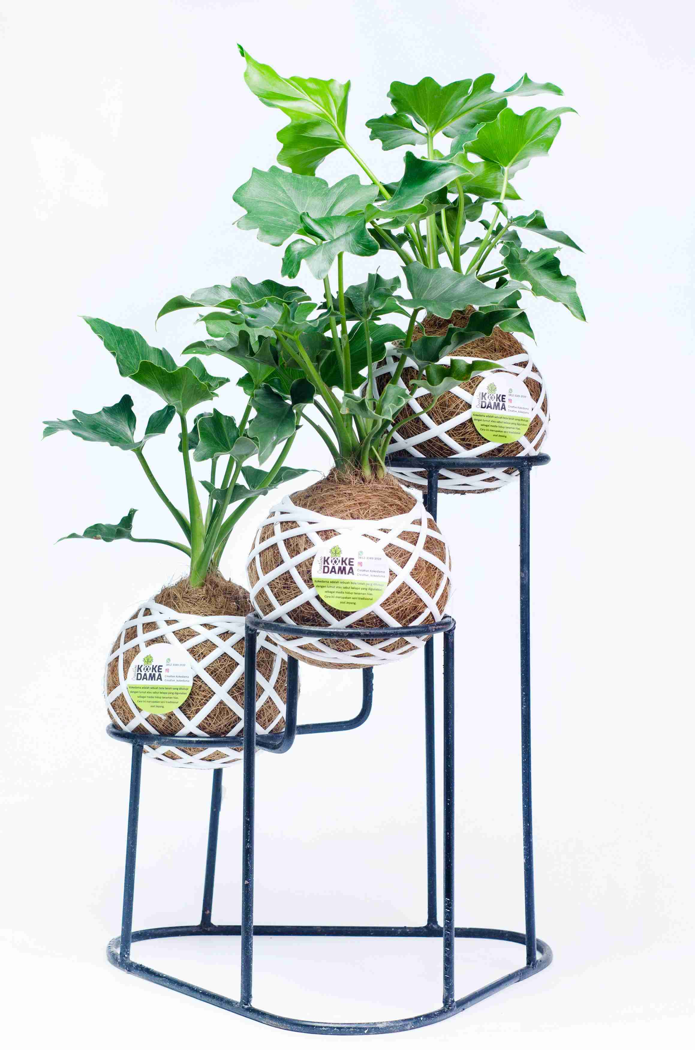 Jenis Bahan: Tanaman hias yang medianya dibentuk bola dan dibalut dengan serabut kelapa (teknik kokedama