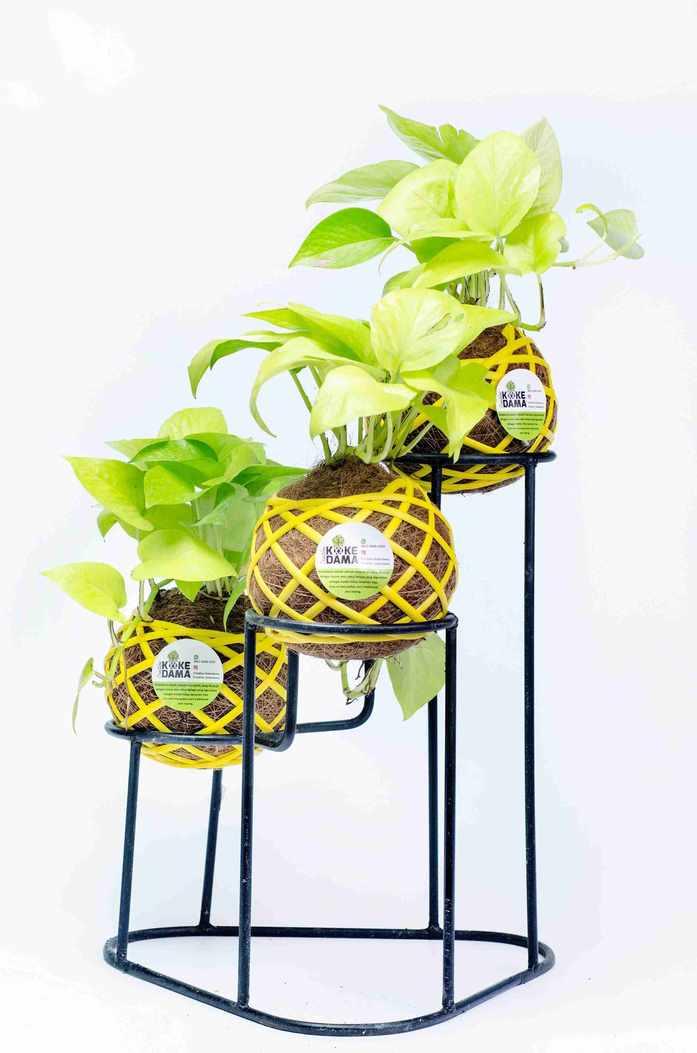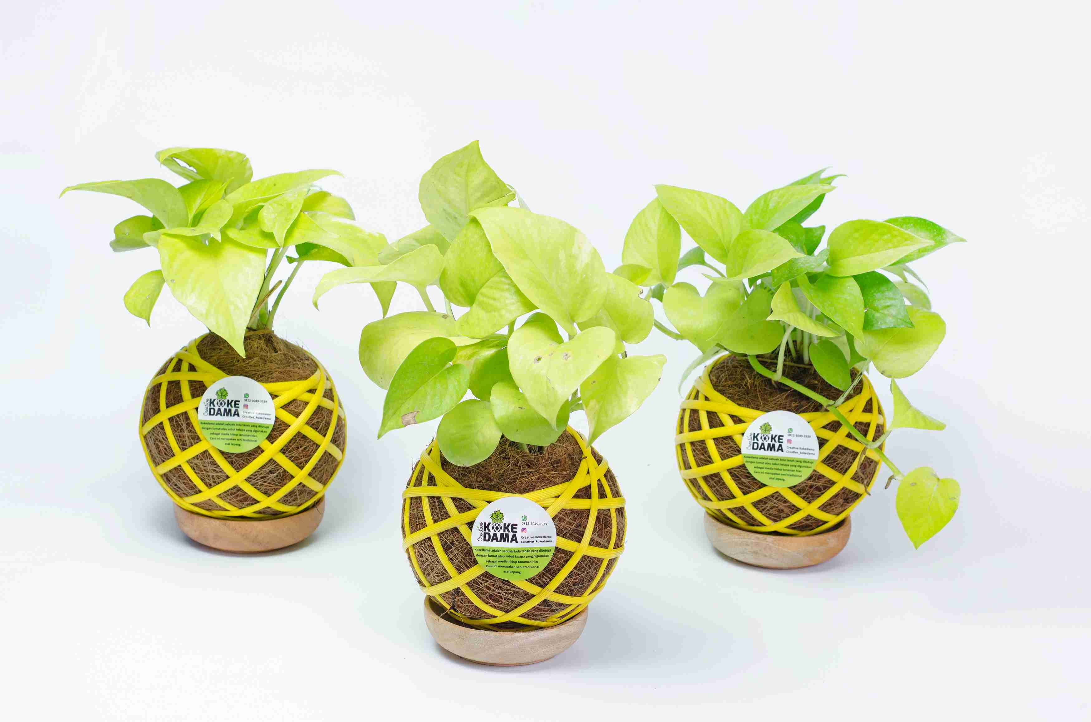 Tanaman ini ditanam dengan teknik kokedama media tanam berbentuk bola tanah yang dibungkus serabut kelapa. Teknik ini tidak hanya membuat tampilan tanaman menjadi unik dan estetis, tetapi juga ramah lingkungan. Selain indah secara visual, Sirih Kuning mudah dirawat dan mampu beradaptasi dengan baik di dalam ruangan, termasuk pada pencahayaan yang terbatas. Dengan keunggulan tersebut, tanaman ini cocok bagi siapa saja yang ingin menghadirkan sentuhan hijau alami dalam ruang hidupnya.