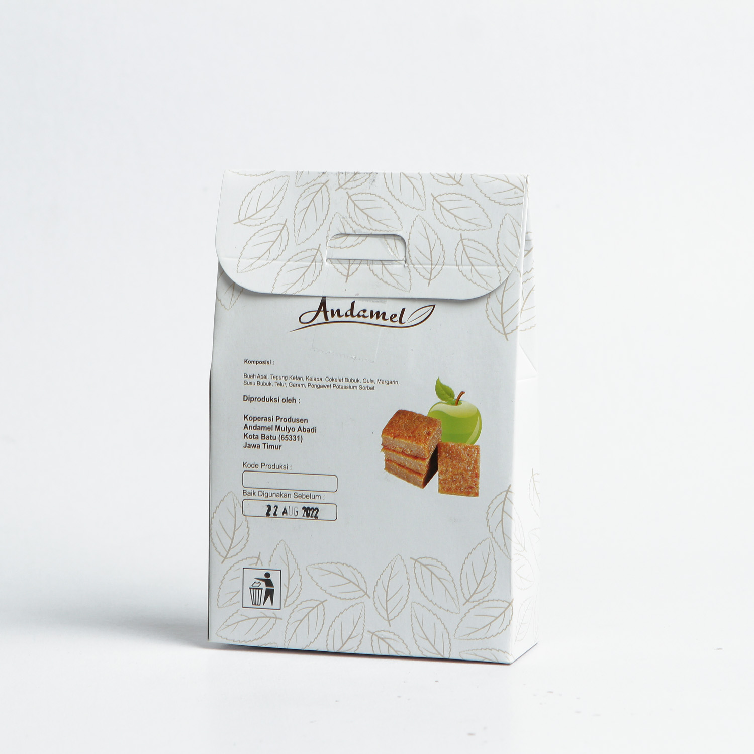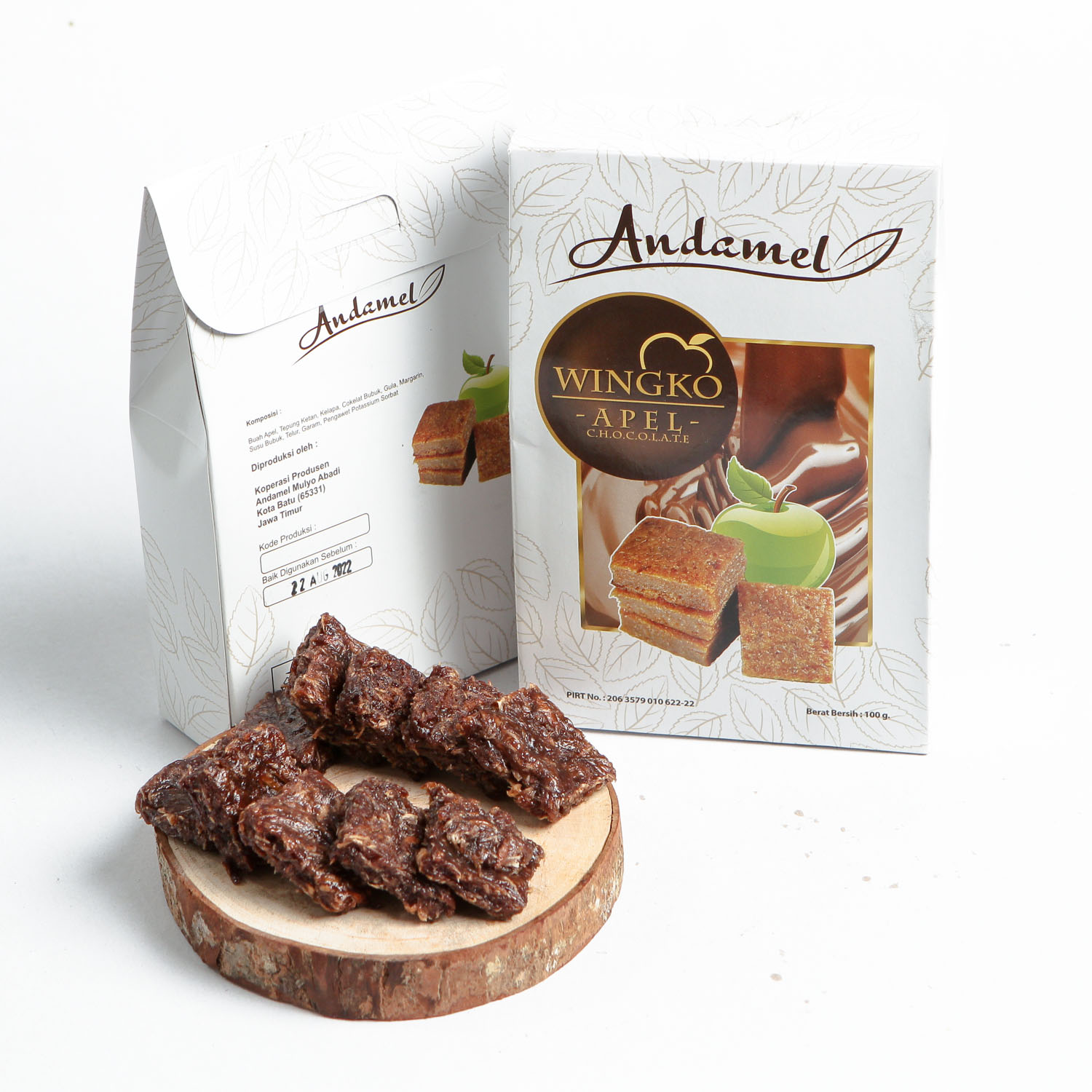 Kandungan Bahan: Buah apel, Tepung ketan, Coklat bubuk, Gula, Margarine, Susu bubuk, Telur, Garam, Pengawet Potasium sorbat