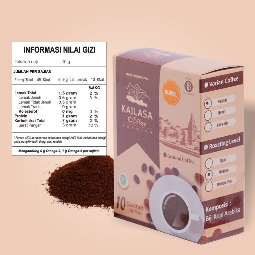 Kailasa Coffee adalah Kopi Indikasi Geografis Kopi Arabika Pegunungan Dieng Banjarnegara. Ditanam pada Ketinggian 1.200 Mdpl dengan mayoritas varietas lini s 795. Lokasi tanam di lereng pegunungan Bismo termasuk kawasan Dataran Tinggi Dieng. Diolah dengan berbagai proses pengolahan biji kopi yang tepat, dengan aroma yang khas, rasa yang pas, serta varian dalam proses pengolahan mencipakan kopi khas Nusantara yang berkualitas. Bahan Baku Cherry Merah, Biji premium terpilih, Specialty Coffee, sangrai segar, profil sangrai light ke medium, Standar grinding medium ke fine, 100 % Kopi arabika , murni dan natural, bergaransi, PIRT dan bersertifikat Halal, terdaftar di DJKI.