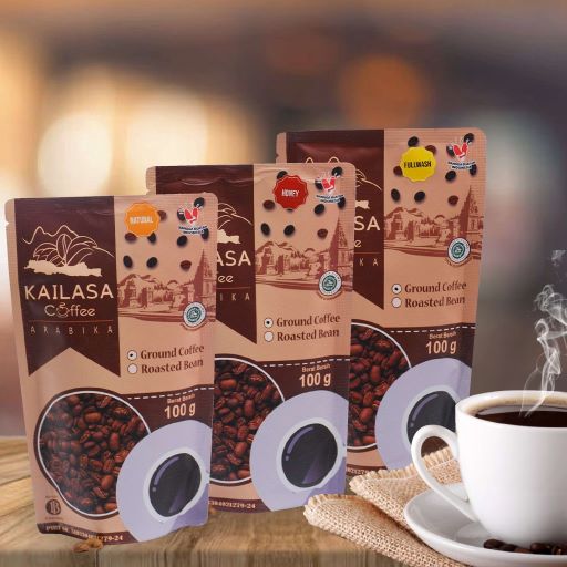 Kailasa Coffee adalah Kopi Indikasi Geografis Kopi Arabika Pegunungan Dieng Banjarnegara. Ditanam pada Ketinggian 1.200 Mdpl dengan mayoritas varietas lini s 795. Lokasi tanam di lereng pegunungan Bismo termasuk kawasan Dataran Tinggi Dieng. Diolah dengan berbagai proses pengolahan biji kopi yang tepat, dengan aroma yang khas, rasa yang pas, serta varian dalam proses pengolahan mencipakan kopi khas Nusantara yang berkualitas. Bahan Baku Cherry Merah, Biji premium terpilih, Specialty Coffee, sangrai segar, profil sangrai light ke medium, Standar grinding medium ke fine, 100 % Kopi arabika , murni dan natural, bergaransi, PIRT dan bersertifikat Halal, terdaftar di DJKI.