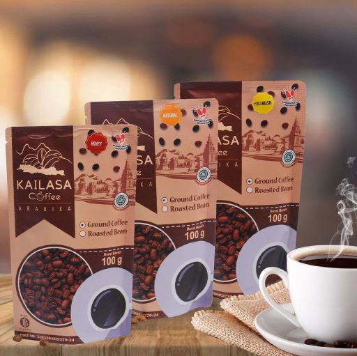 Kailasa Coffee adalah Kopi Indikasi Geografis Kopi Arabika Pegunungan Dieng Banjarnegara. Ditanam pada Ketinggian 1.200 Mdpl dengan mayoritas varietas lini s 795. Lokasi tanam di lereng pegunungan Bismo termasuk kawasan Dataran Tinggi Dieng. Diolah dengan berbagai proses pengolahan biji kopi yang tepat, dengan aroma yang khas, rasa yang pas, serta varian dalam proses pengolahan mencipakan kopi khas Nusantara yang berkualitas. Bahan Baku Cherry Merah, Biji premium terpilih, Specialty Coffee, sangrai segar, profil sangrai light ke medium, Standar grinding medium ke fine, 100 % Kopi arabika , murni dan natural, bergaransi, PIRT dan bersertifikat Halal, terdaftar di DJKI.