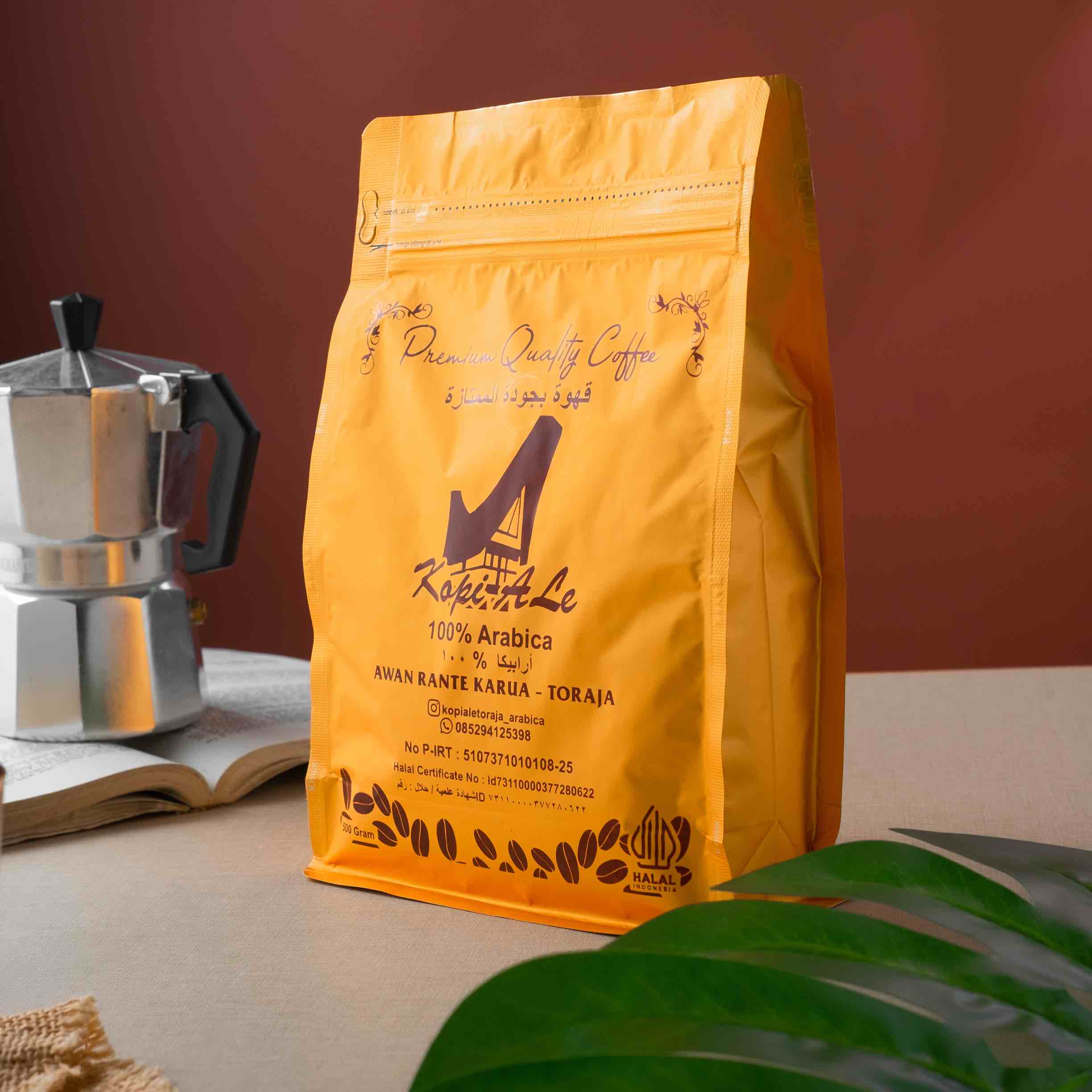 Kopi Ale berasal dari lahan kopi di Awan Rante Karua, Toraja Utara. Komitmen pemilik yang mengelola langsung prosesnya sejak hulu hingga hilir memberikan jaminan kualitas kopi yang dihasilkan, dengan tetap bermitra untuk pemberdayaan petani lokal.