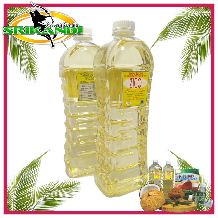 Merupakan minyak goreng kelapa murni non kolesterol terbuat dari buah kelapa asli berkualitas yang telah diuji di laboratorium teknologi pangan UGM YOGYAKARTA. Diproses menggunakan metode emulsi dan tidak menggunakan proses RBD(Bahan Kimia Berbahaya). Dikemas dengan kemasan botol isi 1liter.