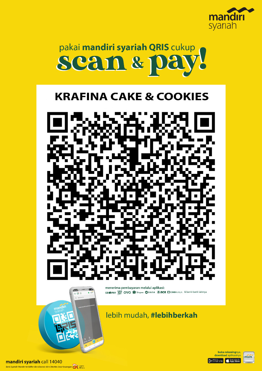 Krafina Cake & Cookies adalah usaha kuliner yang memproduksi aneka kue kering dan kue basah. Produk kue kering kami mencakup nastar, kastangel, putri salju, coklat mede cornflake, serta produk unggulan SuStik Keju (soes kering keju). Untuk kue basah, kami menawarkan kue soes, tahu fantasi, kue lumpur kentang, risoles, pastel, brownies kukus, dan lainnya. Seluruh produk dibuat dari bahan-bahan pilihan, diproses secara higienis, tanpa bahan pengawet, dan mengutamakan cita rasa. Krafina berkomitmen menghadirkan sajian yang lezat, aman, dan cocok untuk keluarga maupun berbagai acara.