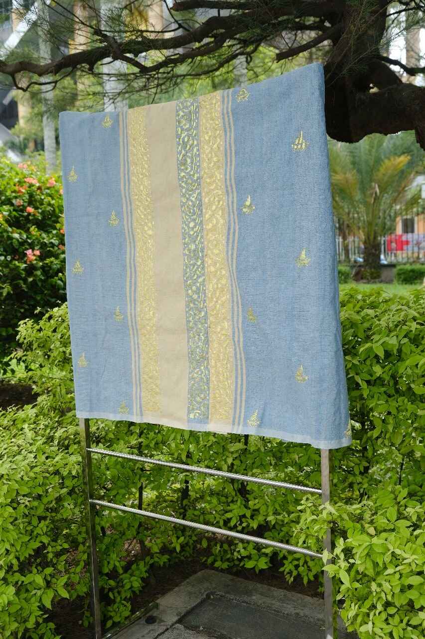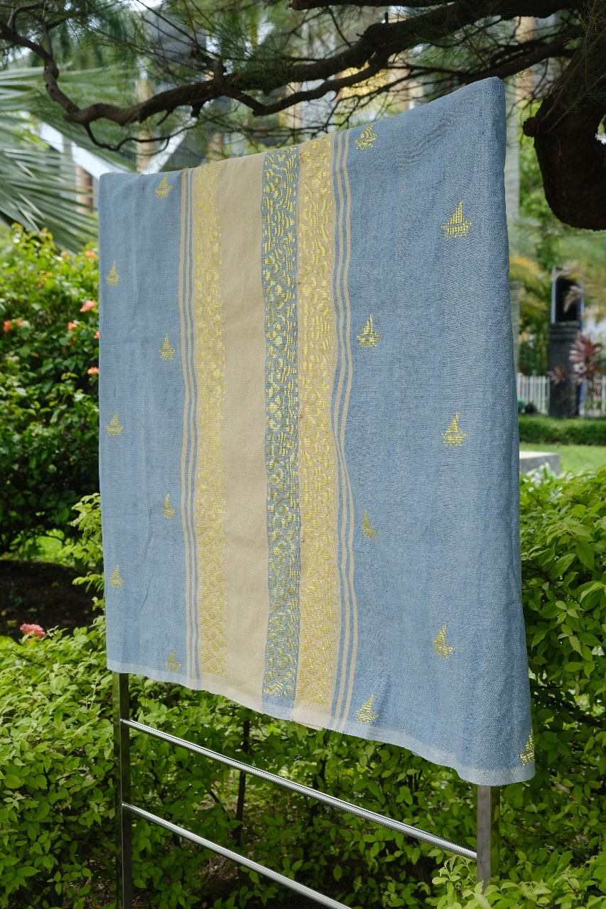 Kain Tenun Bahan Baju Pewarna Alam (Biru Kuning)