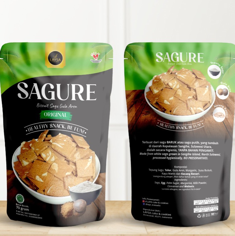 Sagure merupakan biskuit sagu gula merah yang terbuat dari Baruk atau sagu putih yang tumbuh di daerah Kepulauan Sangihe, Sulawesi Utara. diolah secara higienis, tanpa bahan pengawet