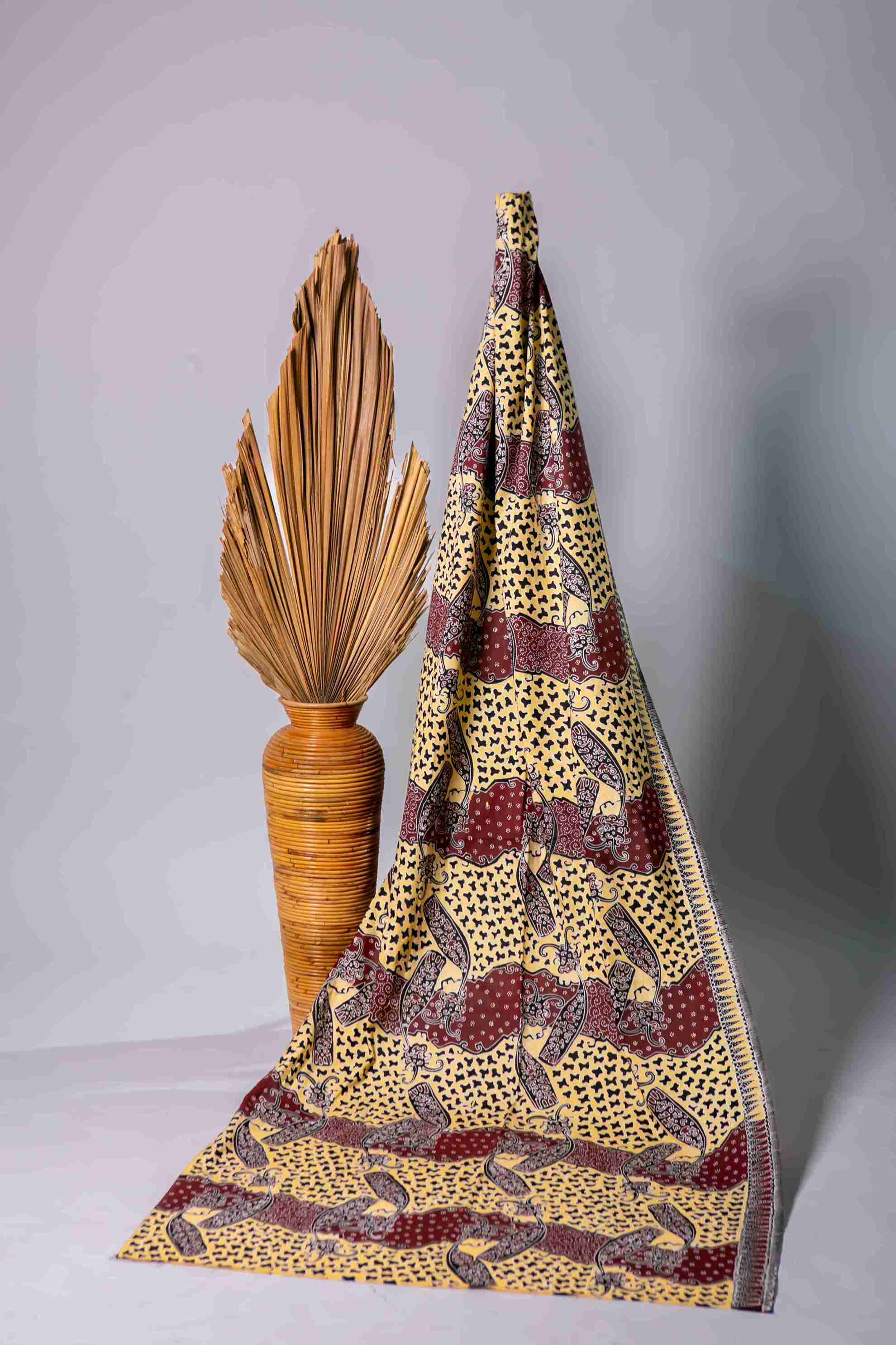 Makna Motif: Motif Sapeq dari Kalimantan Timur terinspirasi dari bentuk dan ornamen alat musik tradisional Dayak, yaitu sape’, yang melambangkan harmoni, ekspresi jiwa, dan kedalaman budaya. Motif ini merepresentasikan kehalusan rasa, kreativitas, serta kekayaan spiritual masyarakat Dayak yang dituangkan melalui alunan musik dan visualisasi ornamen ukiran pada sape’. Bentuk lengkung dan detail rumit pada motif menggambarkan keseimbangan antara kekuatan dan kelembutan, serta hubungan erat antara manusia, alam, dan dunia roh. Motif Sapeq menjadi simbol keindahan seni yang mengakar kuat dalam identitas budaya Kalimantan Timur.