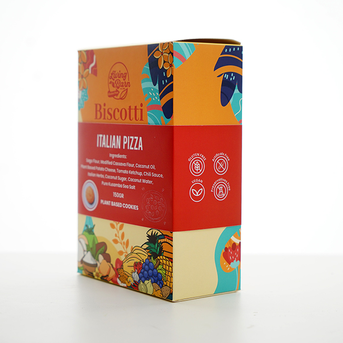 Kue kering nabati, pilihan camilan sehat alami bebas gluten yang dapat dikonsumsi segala usia. Berbahan baku aneka sumber nabati lokal terbaik asli Indonesia, seperti tepung sagu dan tepung singkong berkualitas tinggi, sehingga membantu menghidupkan perekonomian para petani dan artisan berdedikasi. Manis alami dari gula kelapa dalam jumlah minimal membuat produk ini aman dikonsumsi bagi Anda yang membatasi asupan gula. Italian Pizza Biscotti diperkaya dengan aneka kebaikan keju nabati berbasis kentang yang bermanfaat untuk kesehatan pencernaan,saraf dan otak, jantung, serta kesehatan pembuluh darah. Kandungan tomat, cabai, dan aneka rempah seperti oregano, basil serta bawang putih, turut menambah kebaikan dan citarasa dari produk ini. 1% dari nilai penjualan produk ini disumbangkan untuk edukasi masyarakat tentang penyakit autoimun dan pentingnya penerapan pola hidup sehat.