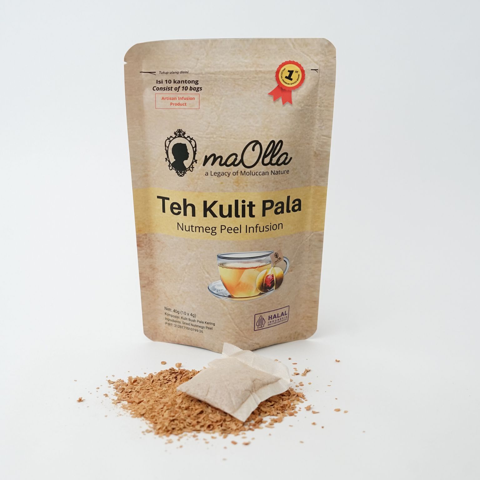 tidak digunakan oleh petani, tetapi kami olah menjadi minuman siap seduh dengan rasa smooth dan elegan. Teh Kulit Pala memberikan efek rileks dan membantu tidur berkualitas dengan sentuhan natural murni, Produk ini adalah solusi natural untuk gaya hidup aktif dewasa ini.