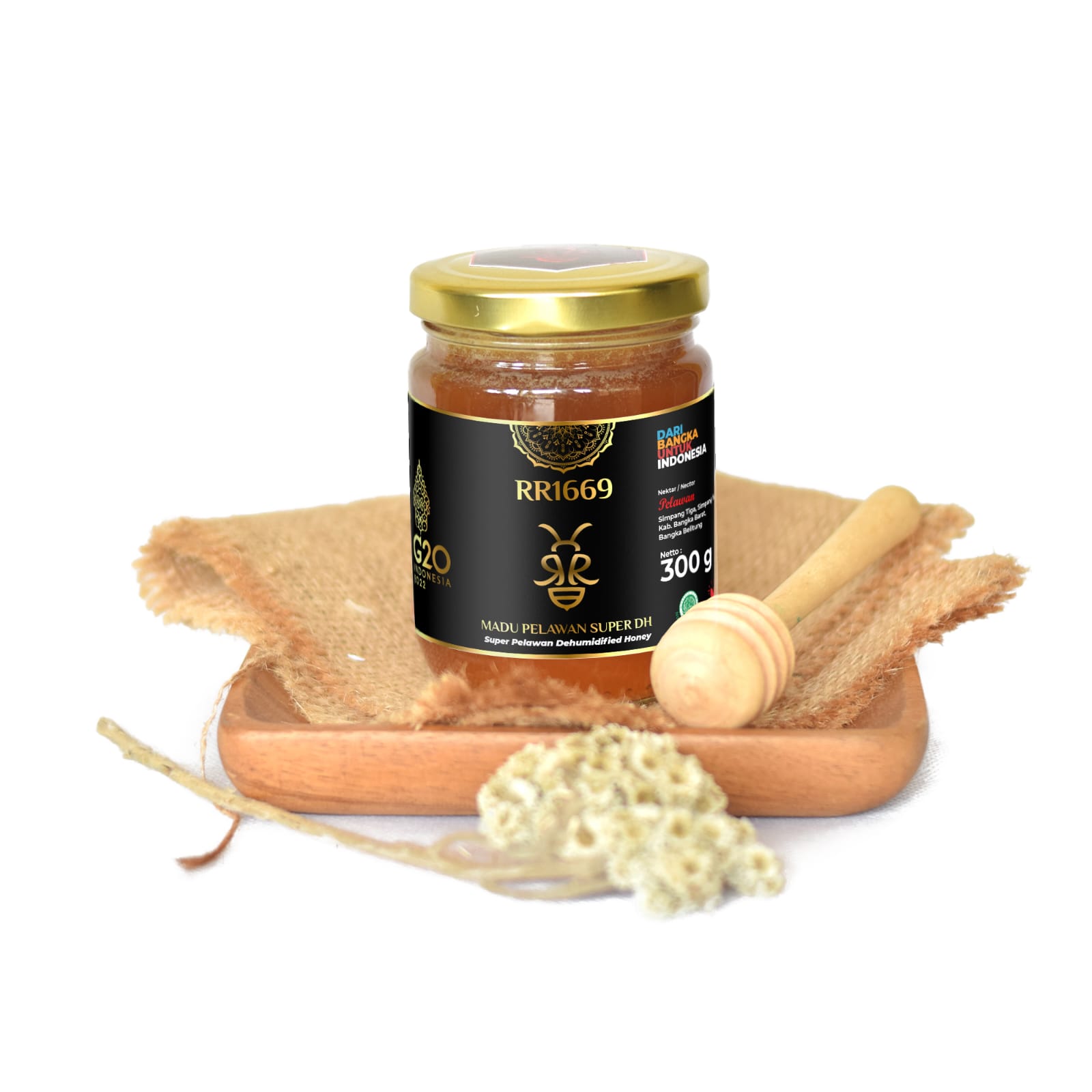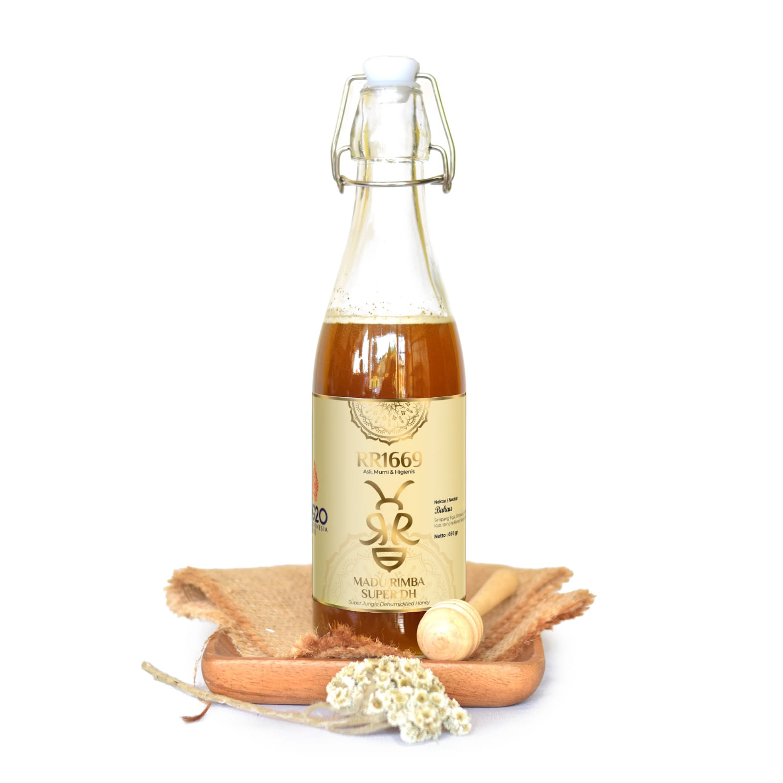 Pada tahun 2017, pencarian kami akan madu asli membawa kami ke hutan-hutan Pulau Bangka. Kami menemukan praktik yang tidak higienis: madu diperas tanpa sarung tangan, disimpan dalam ember bekas cat. Kami bertindak, mengedukasi masyarakat lokal tentang standar kebersihan, mulai dari sarung tangan food-grade hingga wadah aman. Dari sinilah lahir Madu RR1669, madu murni yang higienis dan terstandar dari panen hingga pengemasan. Kini, Juragan Madu Bangka tidak hanya memproduksi madu, tetapi juga memberdayakan para pemburu madu hutan dan peternak lebah kelulut di Bangka Belitung untuk menghasilkan madu berkualitas ekspor, meningkatkan kesejahteraan bersama.