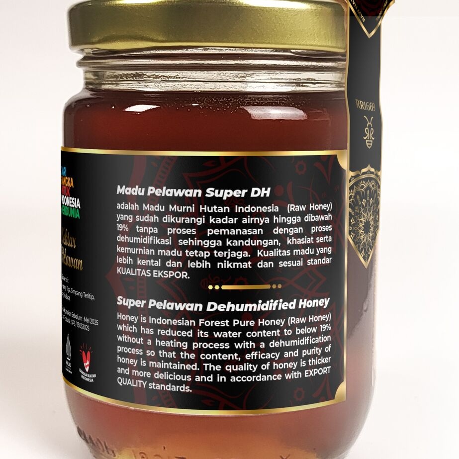Madu unggulan yang dihasilkan dari lebah liar hutan Bangka yang mengisap nektar pohon langka Pelawan (Tristaniopsis merguensis). Dikenal dengan warna sedikit gelap, rasa pahit-manis yang khas, dan kaya antioksidan tinggi.