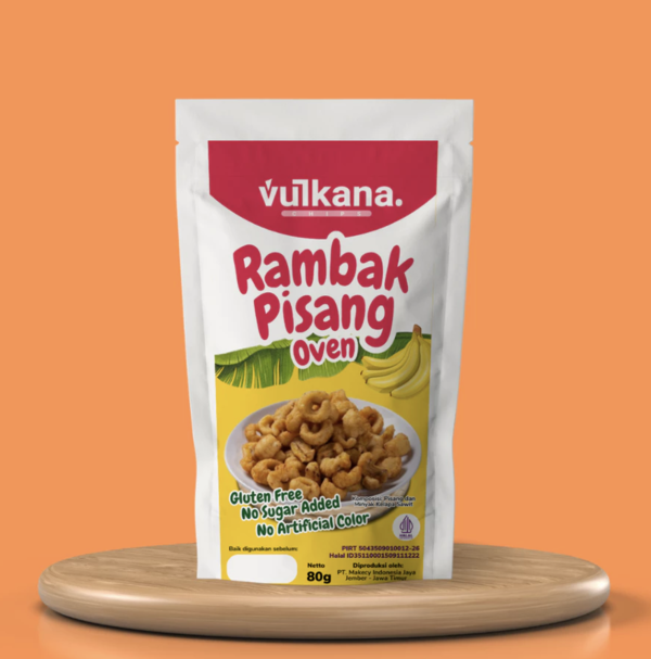 Rambak Pisang Oven Vulkana adalah camilan sehat berbahan dasar pisang yang dipanggang renyah, tanpa tambahan gula, tanpa pewarna buatan, dan bebas gluten. Cocok untuk dinikmati semua kalangan sebagai pilihan snack alami dan bergizi.