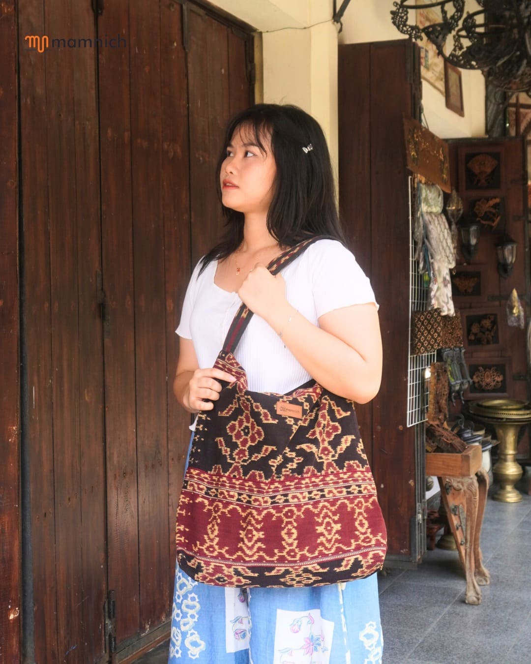 Mamnich memulai usaha dalam pembuatan berbagai macam gift dan souvenir. Awal mulanya kami menggunakan nama brand Mama Nicho dengan produk kami adalah bantal print foto. Pada awal tahun 2022 Mama Nicho mengubah brand menjadi MAMNICH. Kami mencoba ide baru dengan berinovasi dengan membuat tas etnik yang dipadu padankan dengan lurik, tenun, dan batik. Dengan mengusung tema melestarikan budaya kain nusantara, mamnich masih terus mengeksplore semua kain yang ada di Indonesia untuk dijadikan berbagai macam tas yang bisa digunakan semua kalangan. 90% tenaga kerja kami adalah wanita dan kami berharap dapat membuka lapangan pekerjaan untuk masyarakat sekitar. Kami ingin terus mengembangkan produk Mamnich agar dikenal didalam maupun diluar negeri.