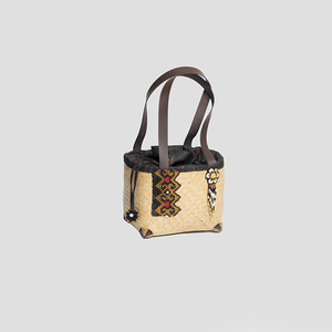 Jenis Bahan: Anyaman rotan, Anyaman manik, Kain katun motif abstrak, tali kulit sintetis