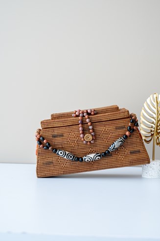 Jenis Bahan: Rumput Ketak, Kulit, Kain Tenun & Aksesoris Bebatuan, Natural Asap (Oven)