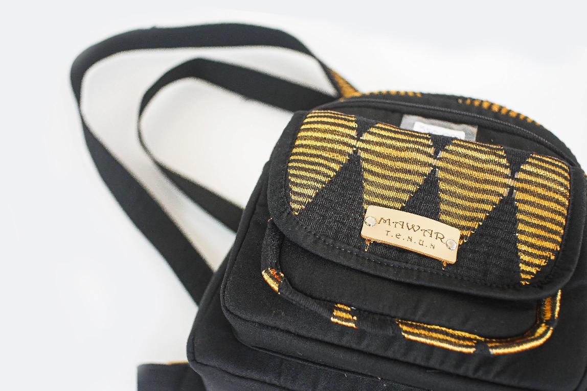 Produk ini dihasilkan menggunakan motif kain tenun rang-rang. Tahan hujan, tidak tembus air.