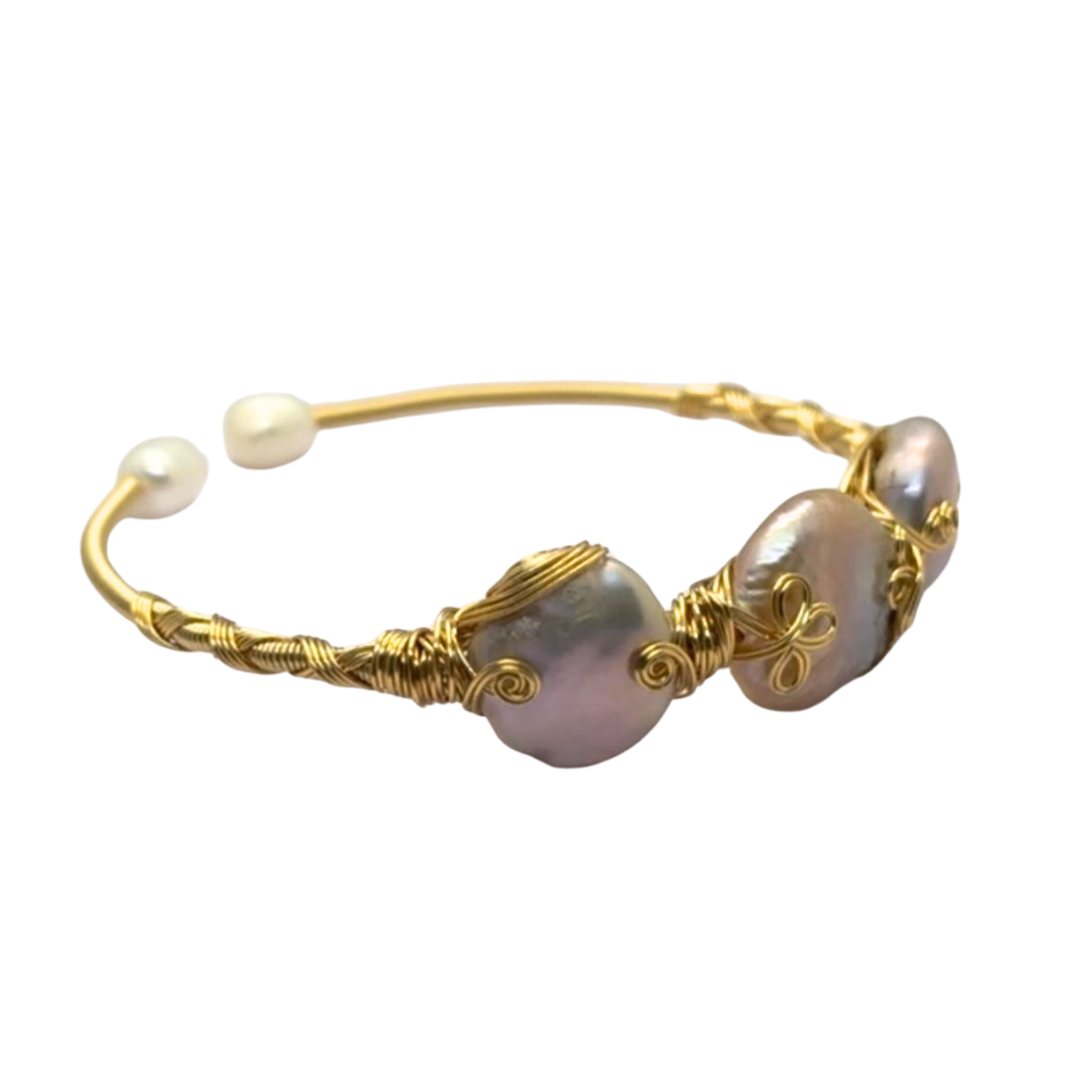 Jenis Bahan: Mutiara Air Tawar Baroque, kawat rhodium lapis emas