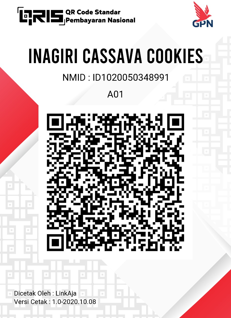 - Cassava Cookies Gluten Free Inagiri Coklat Jahe merupakan kue kering yang terbuat dari bahan baku 100% tepung mocaf dipadu menggunakan coklat asli dan jahe diolah menggunakan teknologi mesin automatic cookies yang terstandar food grade dan hygenis sehingga menghasilkan camilan sehat.