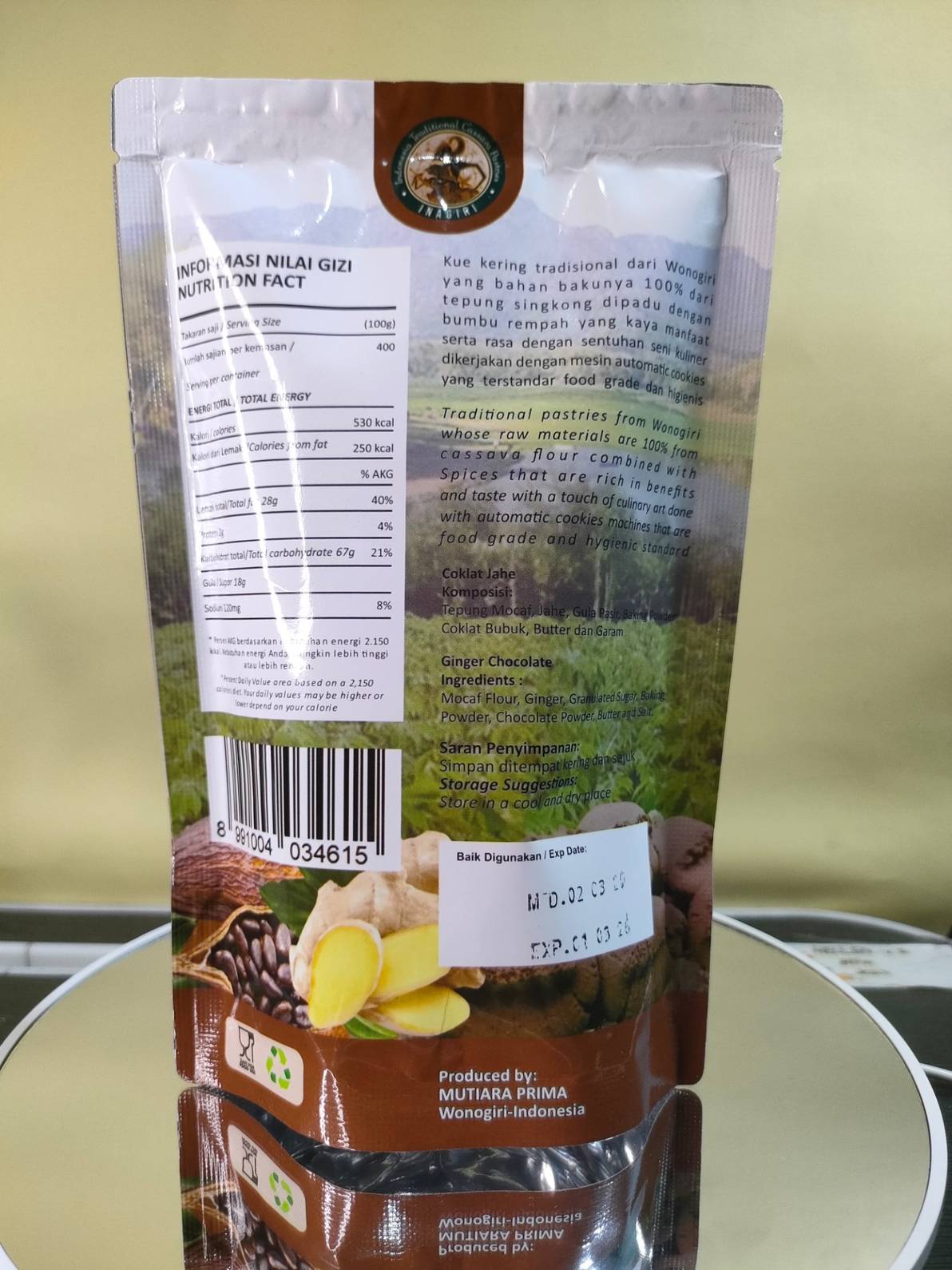 Kandungan Bahan: - Tepung Singkong, Coklat, Jahe, Gula Pasir, Backing Powder, Butter dan Garam