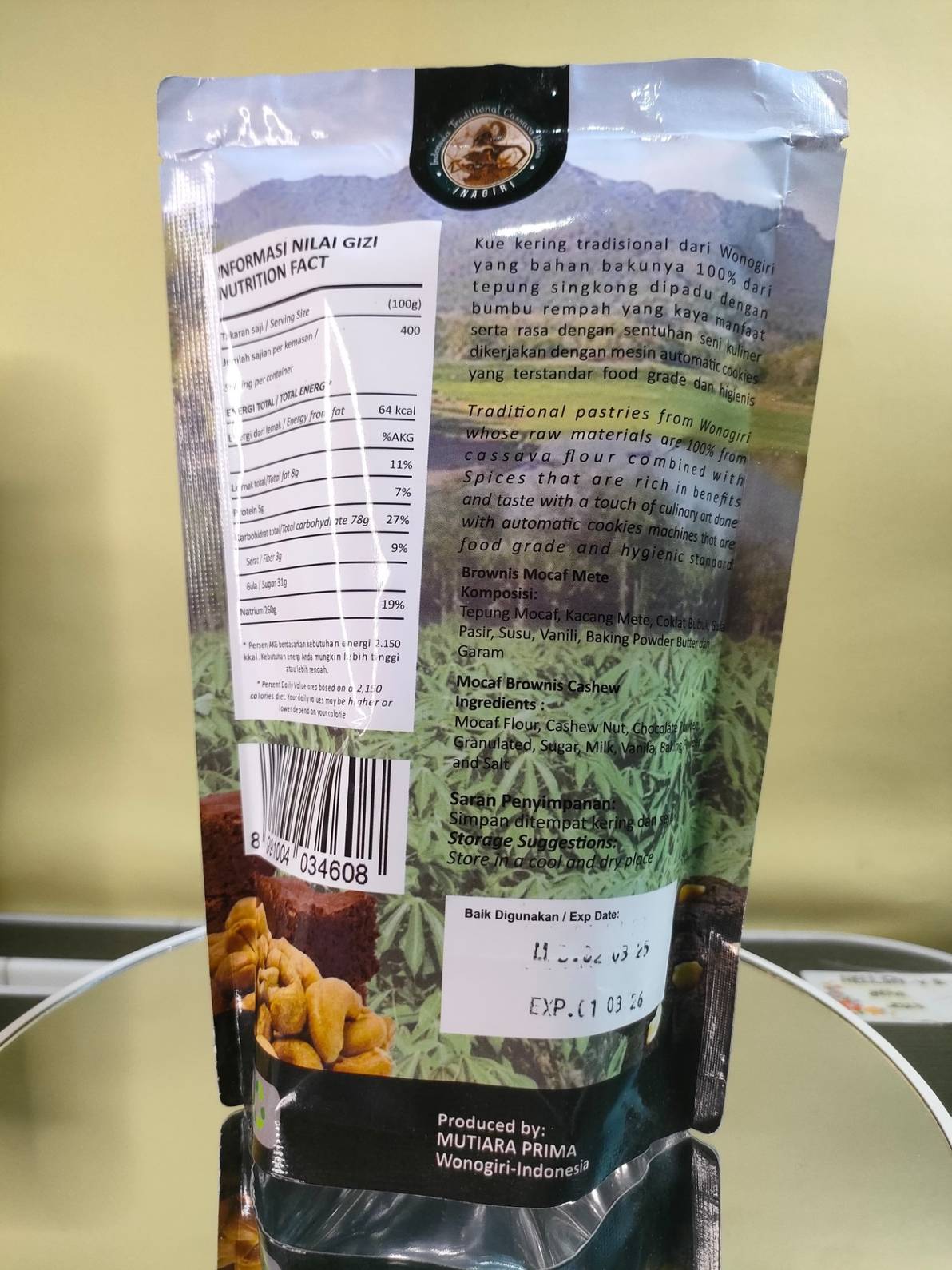 Kandungan Bahan: Tepung Singkong, Coklat,Mete ,Gula Pasir, Backing Powder, Butter dan Garam