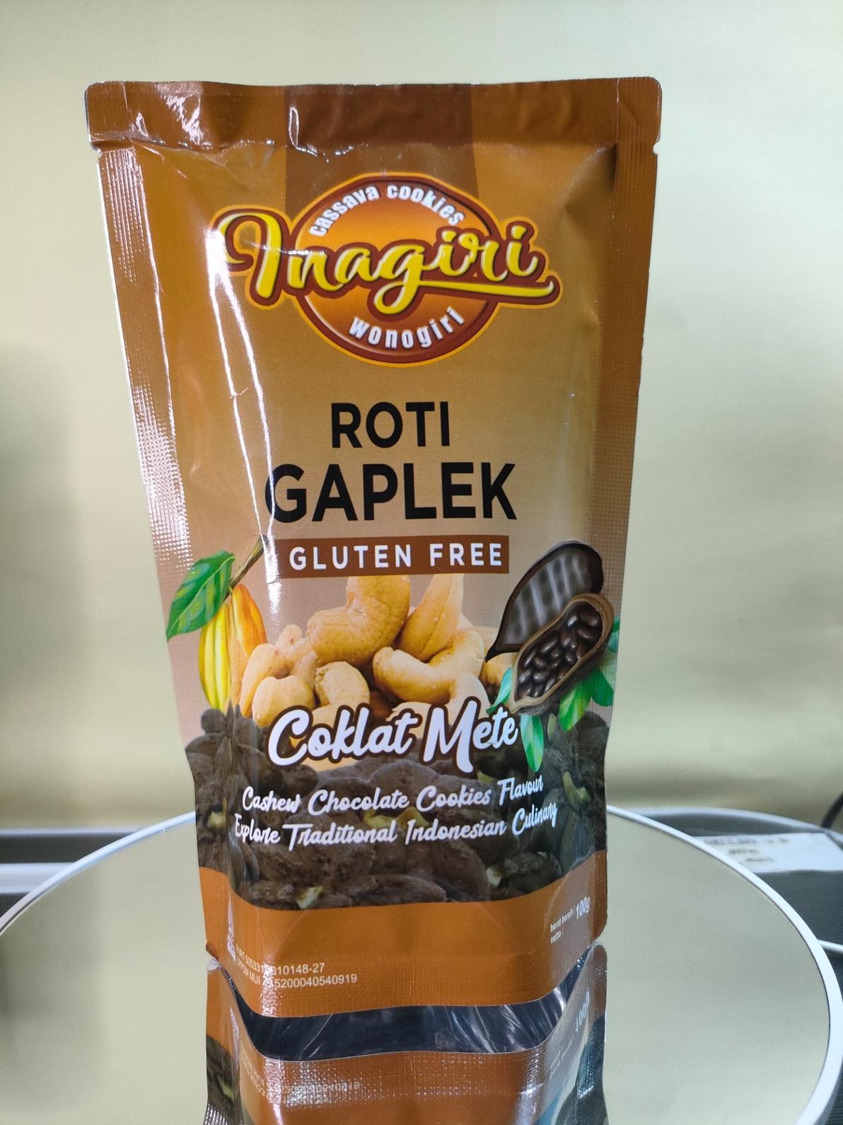 - Cassava Cookies Inagiri Coklat Mete merupakan kue kering yang terbuat dari bahan baku 100% tepung mocaf yang dipadu dengan coklat asli dan mete diolah menggunakan teknologi mesin automatic cookies yang sudah terstandar foodgrade dan hygenis sehingga menghasilkan camilan sehat.