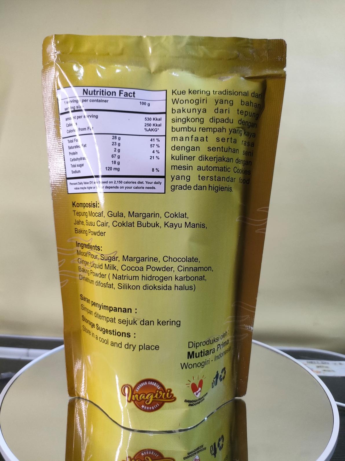 Kandungan Bahan: - Tepung Singkong, Coklat, Jahe , Kayu Manis ,Gula Pasir, Backing Powder, Butter dan Garam