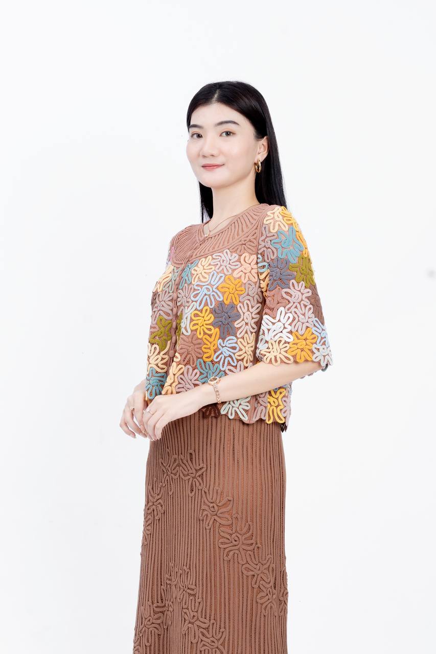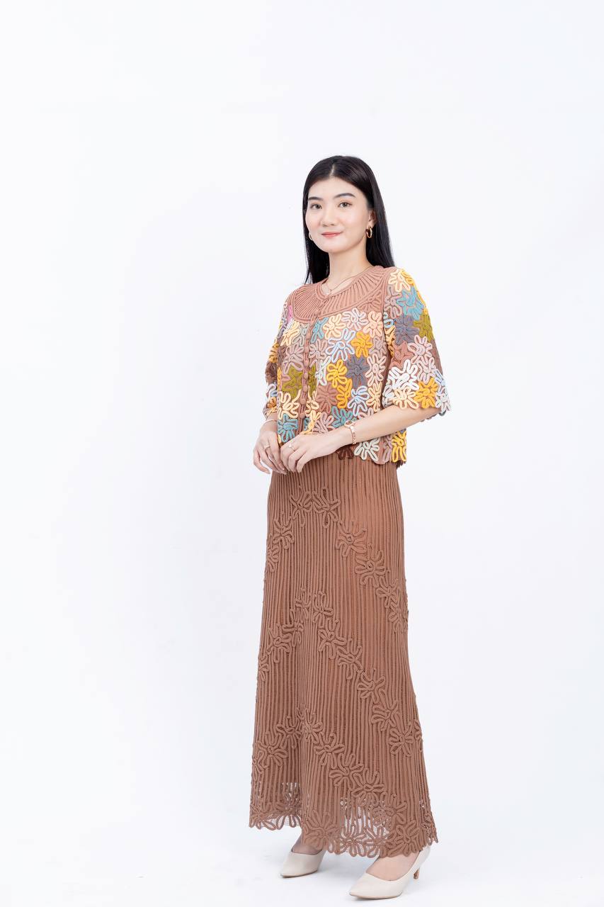 Nabilla - Coral Crop Cardi Sulam Usus Brown Mix