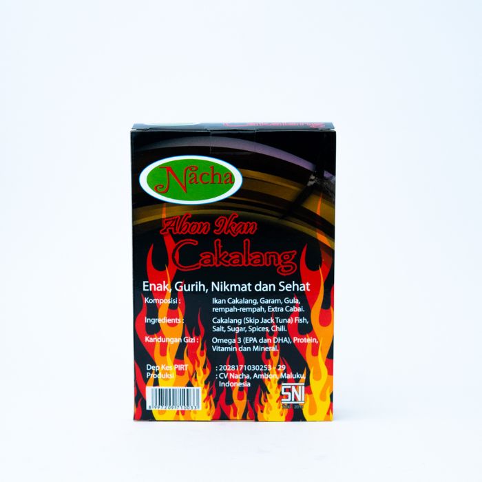 Nacha menghadirkan Abon Ikan Cakalang yang berasal dari Ambon, Propinsi Maluku. Memiliki kandungan gizi, protein dan omega 3 (EPA-DHa). Menggunakan ikan cakalang segar dari perairan Maluku, tanpa bahan pengawet dengan proses higienis dan aman.