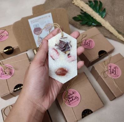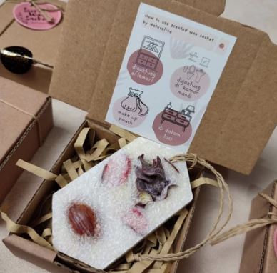 Scented Wax Sachet adalah pengharum padat berbahan dasar palm wax alami, diperkaya dengan aromatic oil dan dekorasi bunga kering yang cantik. Produk ini tidak hanya wangi, tapi juga estetik untuk mempercantik ruang tertutup kecil.