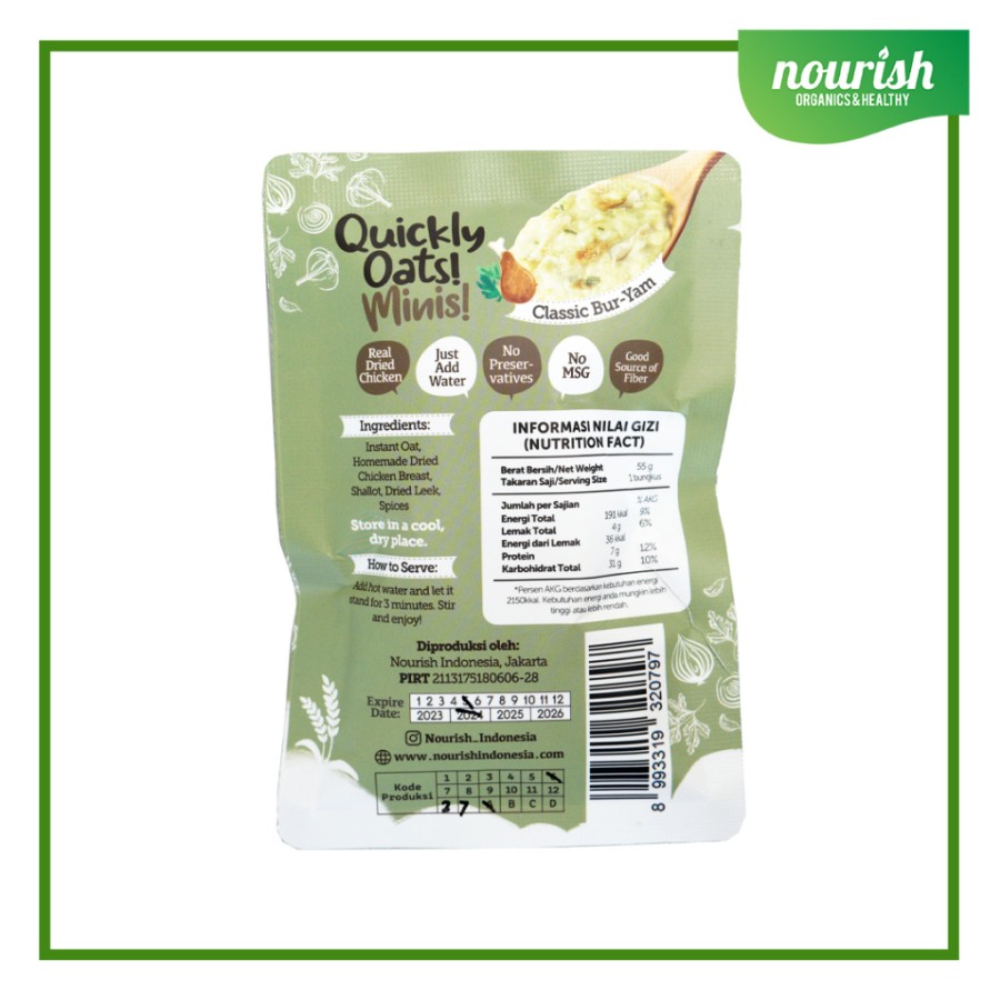 Kandungan Bahan: Instant Oat, Homemade Dried Chicken Breast, Shallot, Dried Leek, Spices